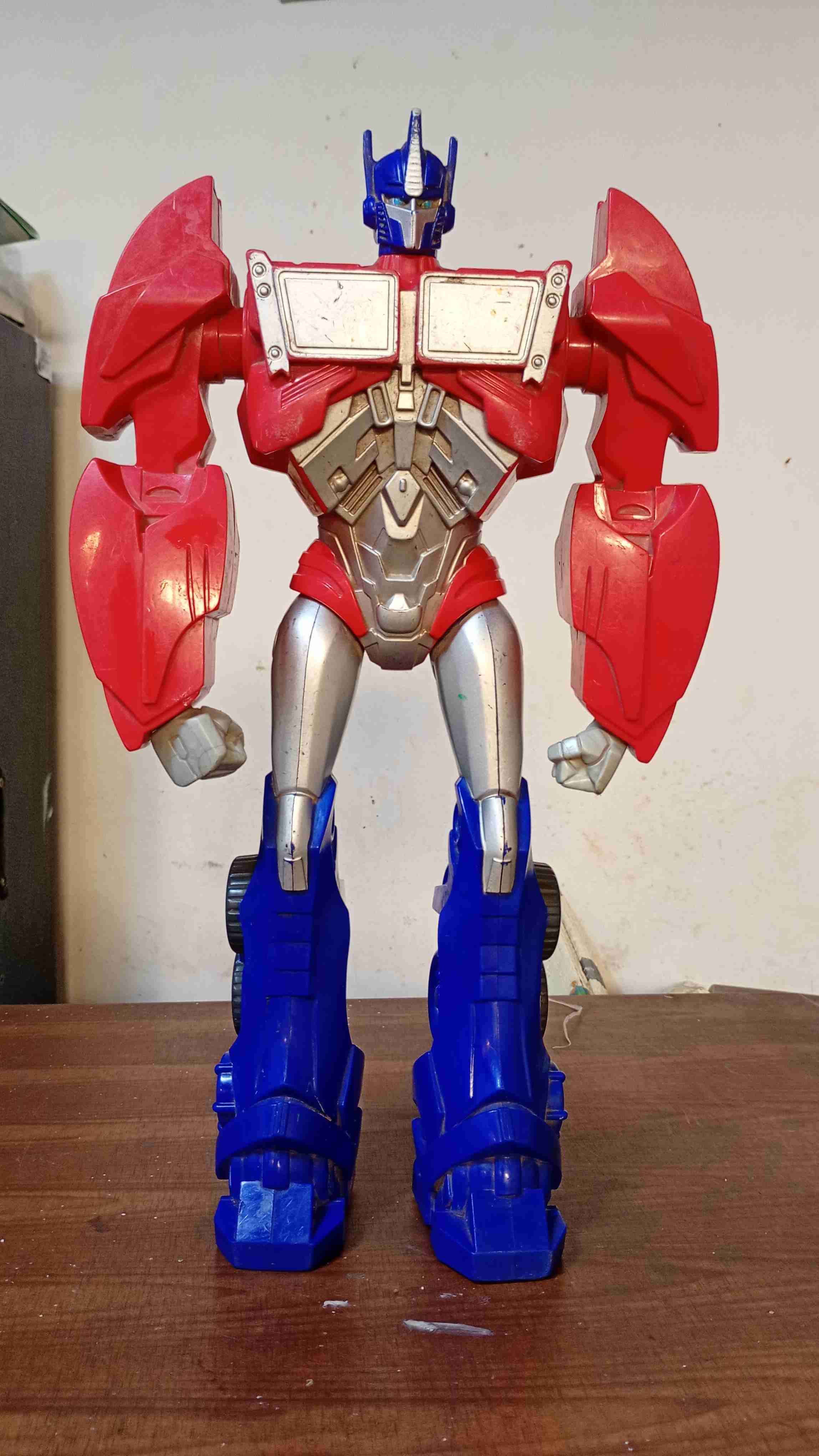 Figura de acción tipo robot con detalles en rojo y azul. Ideal para coleccionistas o fans de los juguetes transformables. En buen estado con leves signos de uso.
