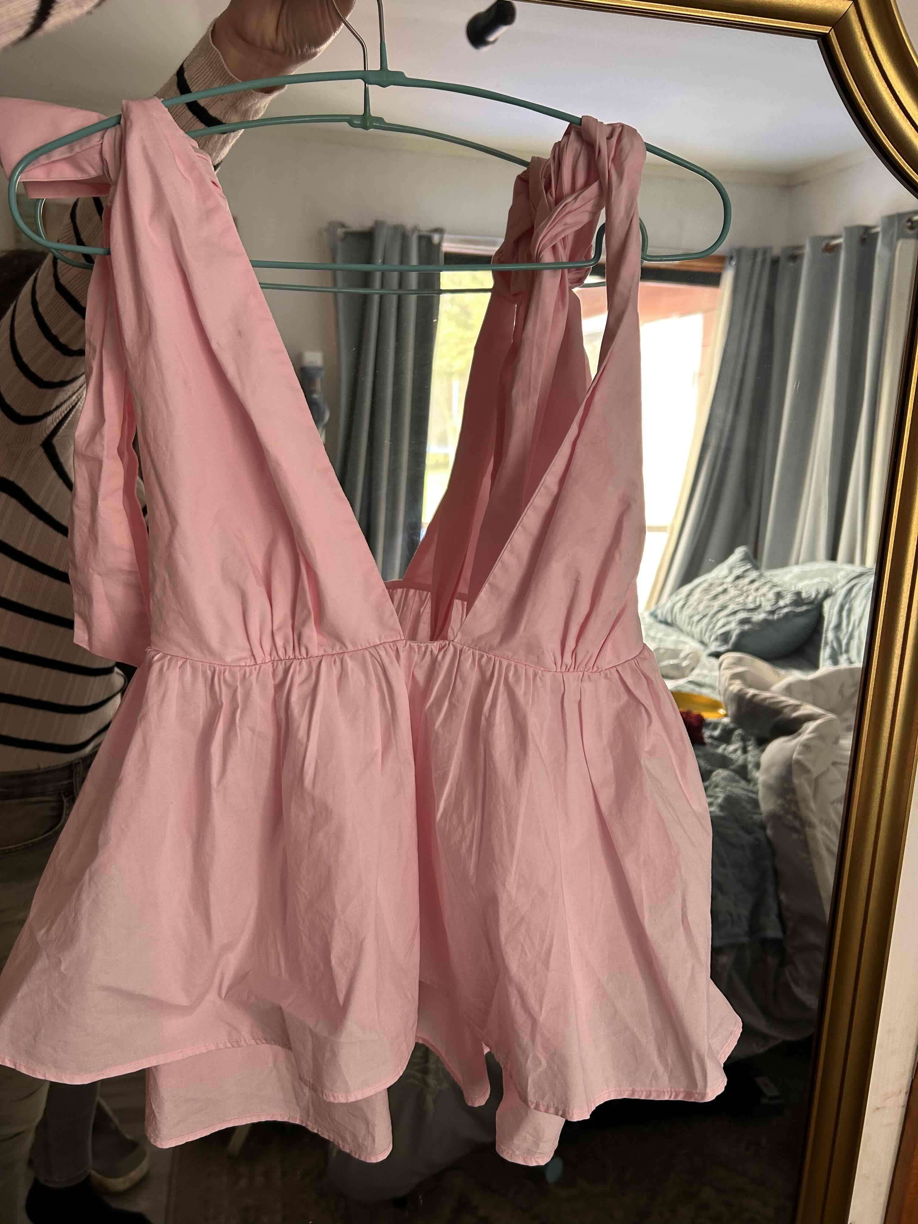 Blusa corta rosa con tirantes anchos, ideal para días soleados. En buen estado.