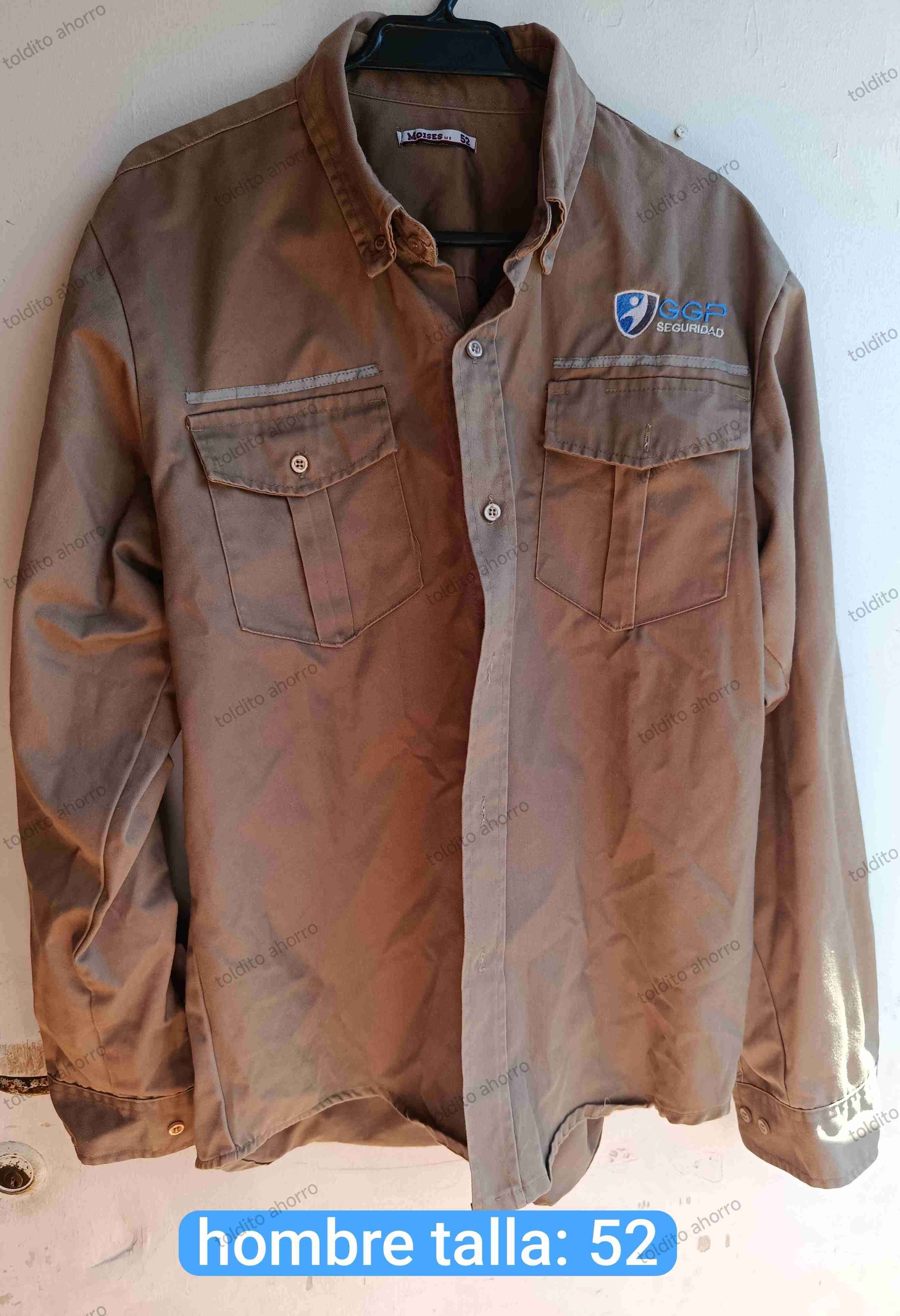 Camisa marrón para hombre, ideal para seguridad. En buen estado, con bolsillos frontales.