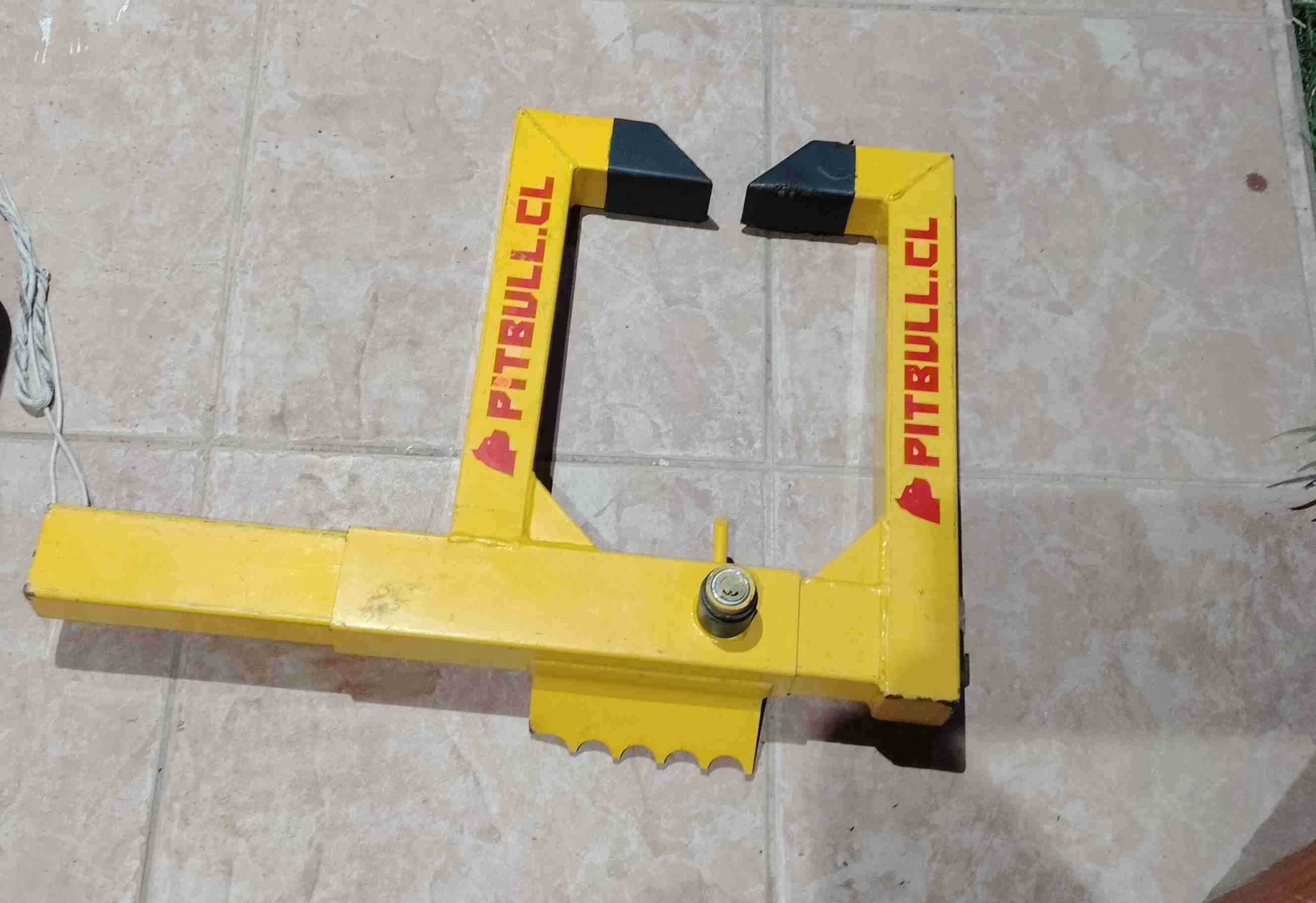 Traba de seguridad para rueda, en buen estado. Ideal para proteger tu vehículo. Color amarillo vibrante.con sus 2 llaves