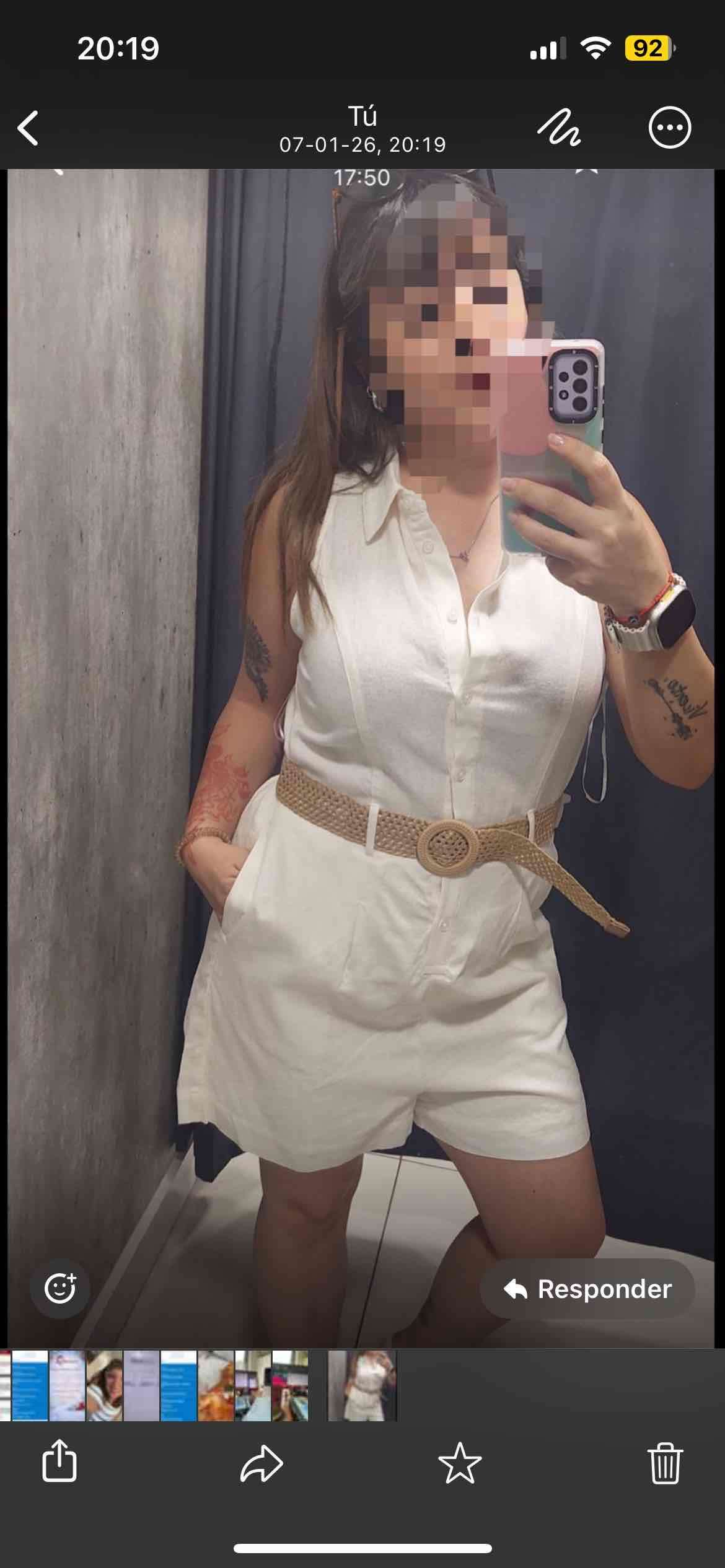 Elegante enterito blanco de tela ligera, ideal para el verano. Incluye un cinturón trenzado para ajustar.