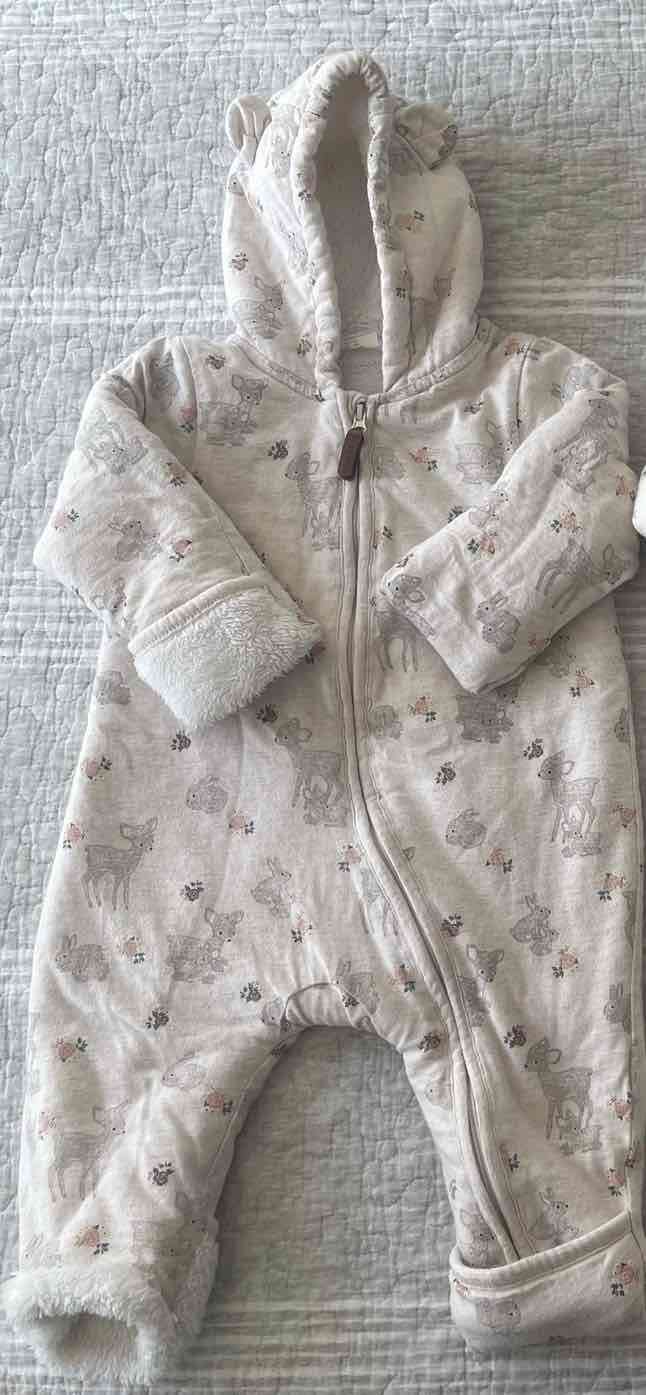 Enterito abrigado con capucha y lindo estampado de animalitos. Ideal para mantener a tu bebé cómodo y cálido en invierno. Es marca H&M, talla 4 a 6 meses. Me costó 30.000 pesos.