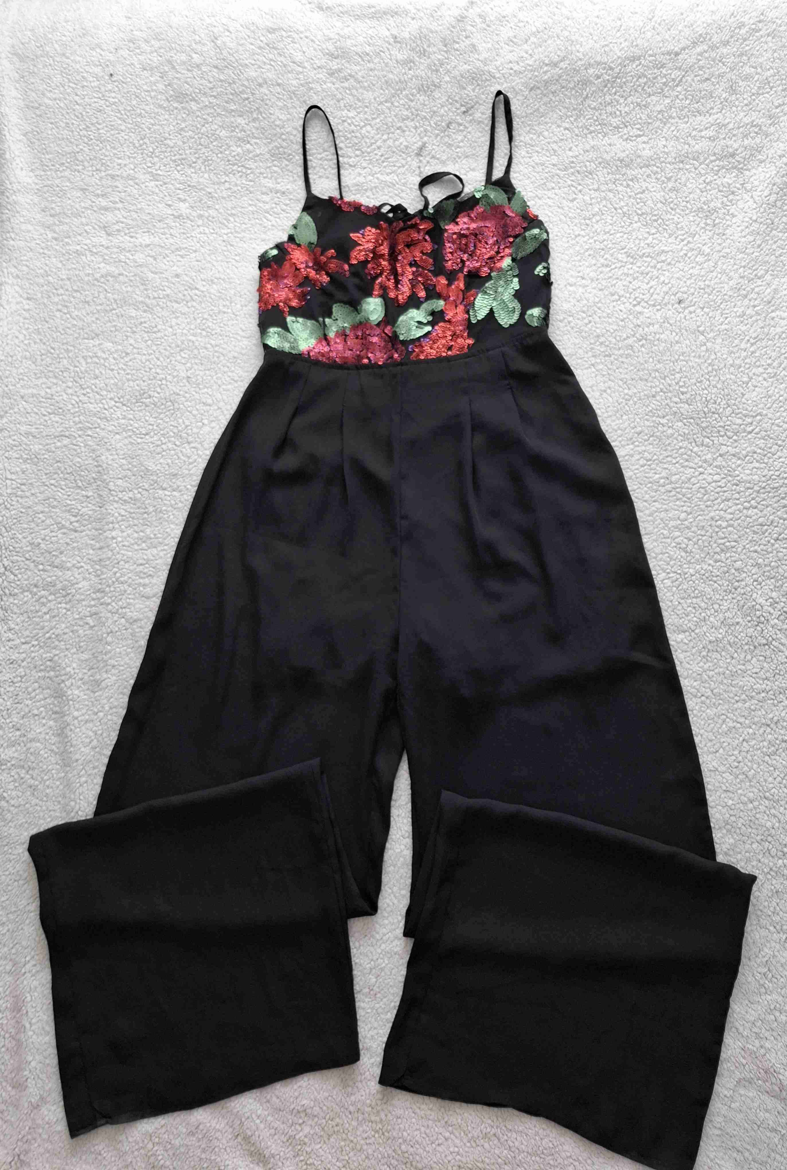 Enterito elegante con diseño floral en el top, perfecto para eventos formales. En buen estado, con tirantes finos.