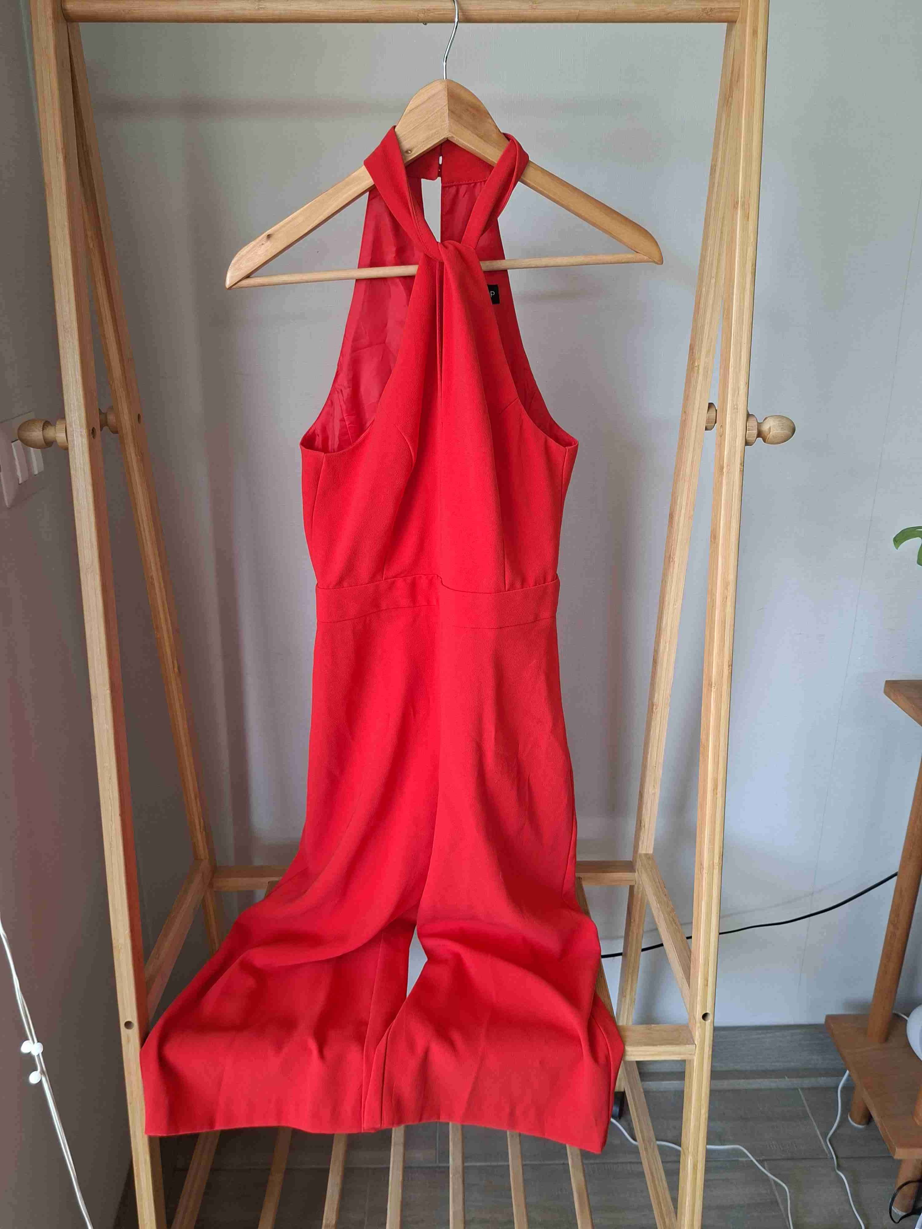 Jumpsuit rojo ideal para eventos formales o casuales. En buen estado, con diseño sin mangas y cuello halter. Talla 34