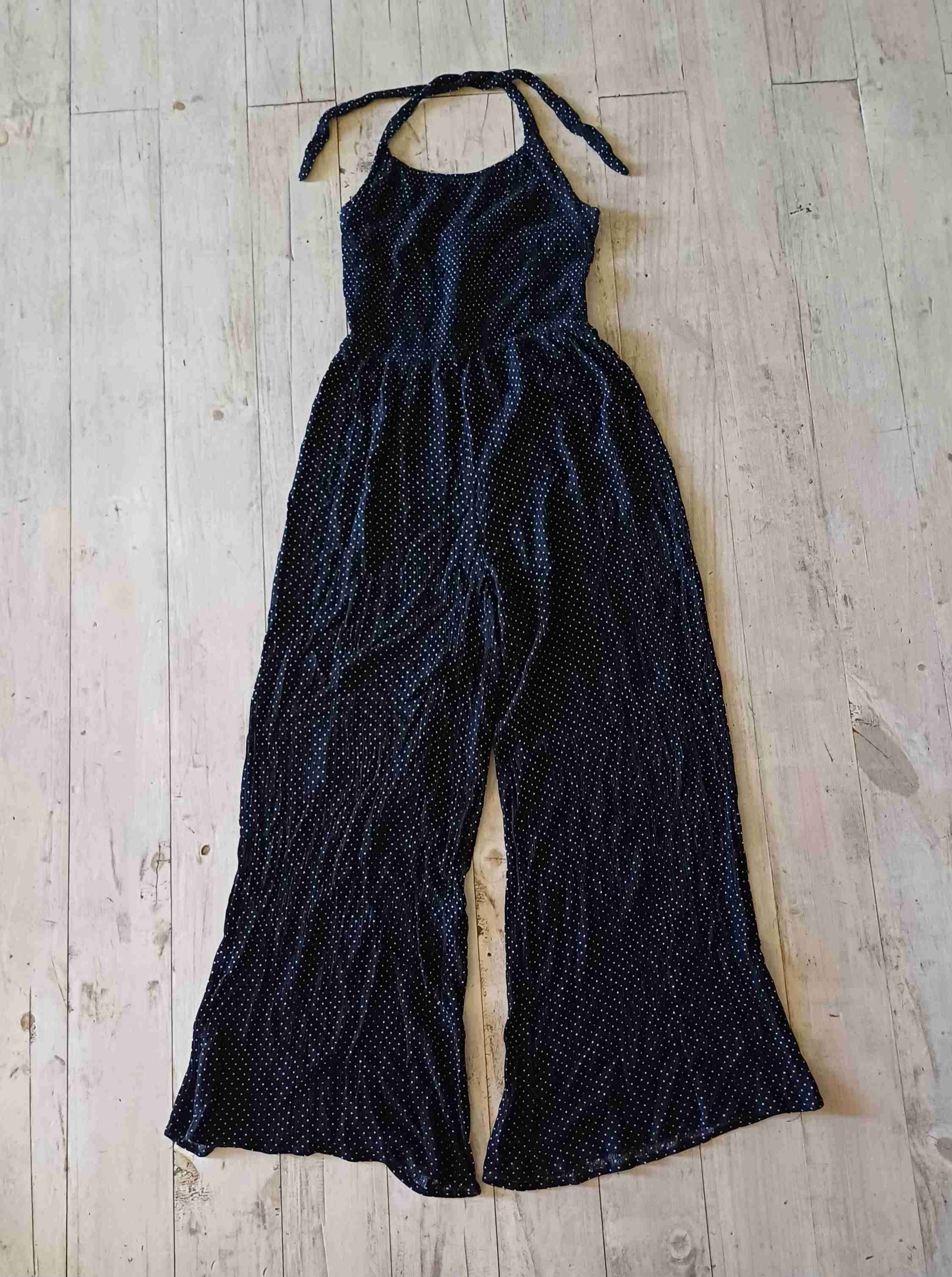 Enterito sin mangas negro con diseño de puntos pequeños, es elasticado, ideal para ocasiones casuales. En buen estado general.