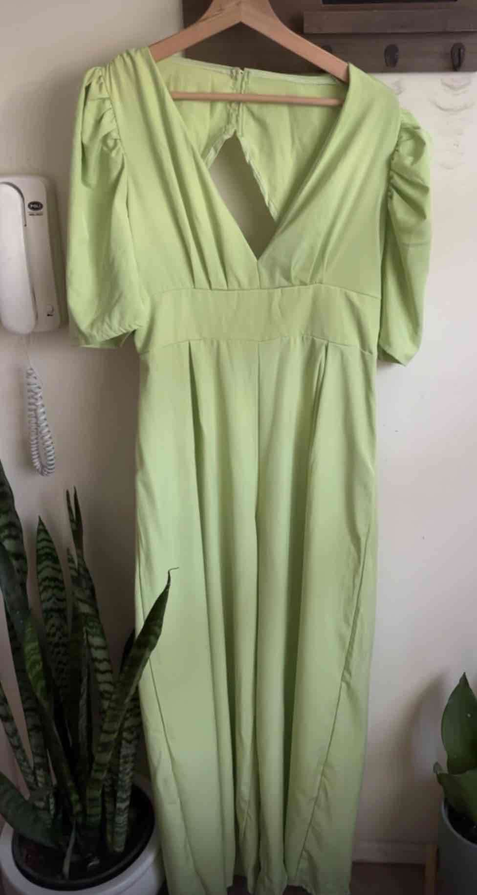 Vestido de color verde claro con mangas abullonadas. Ideal para eventos casuales y formales. Buen estado general.