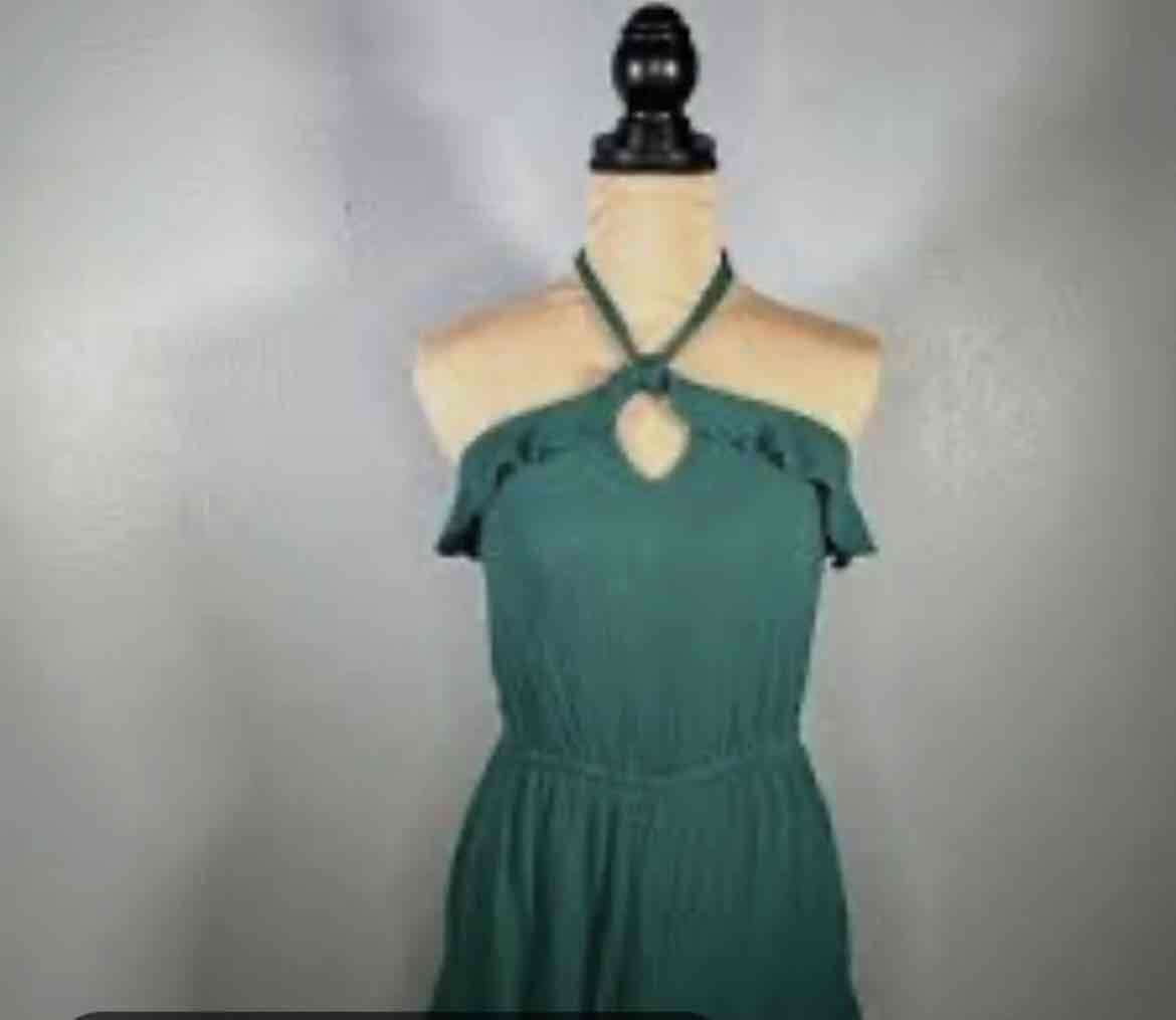 Vestido casual de color verde con diseño de hombros descubiertos y cuello halter. Ideal para el verano,nuevo