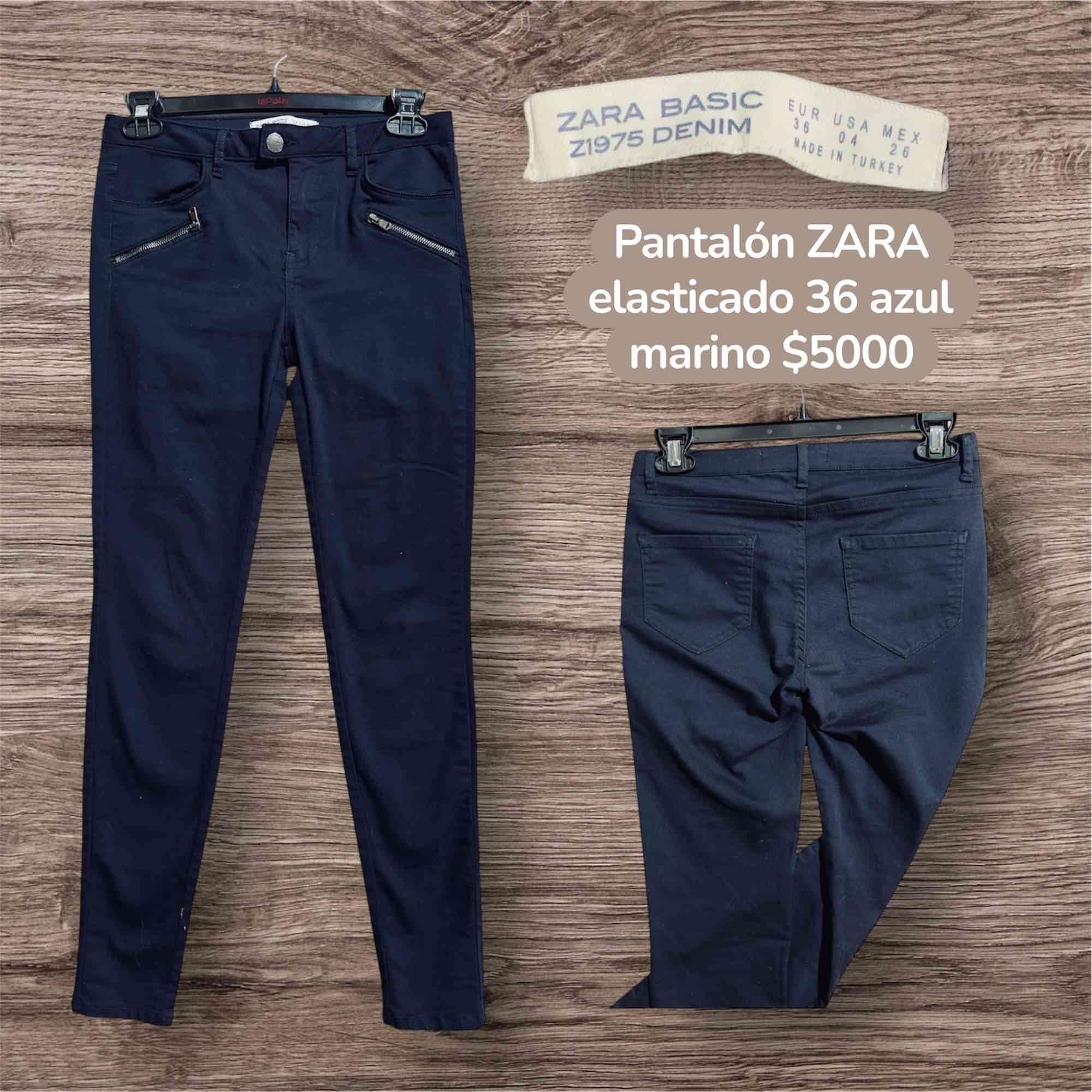 Pantalón elástico de ZARA, estilo casual azul marino. En buen estado, perfecto para uso diario.