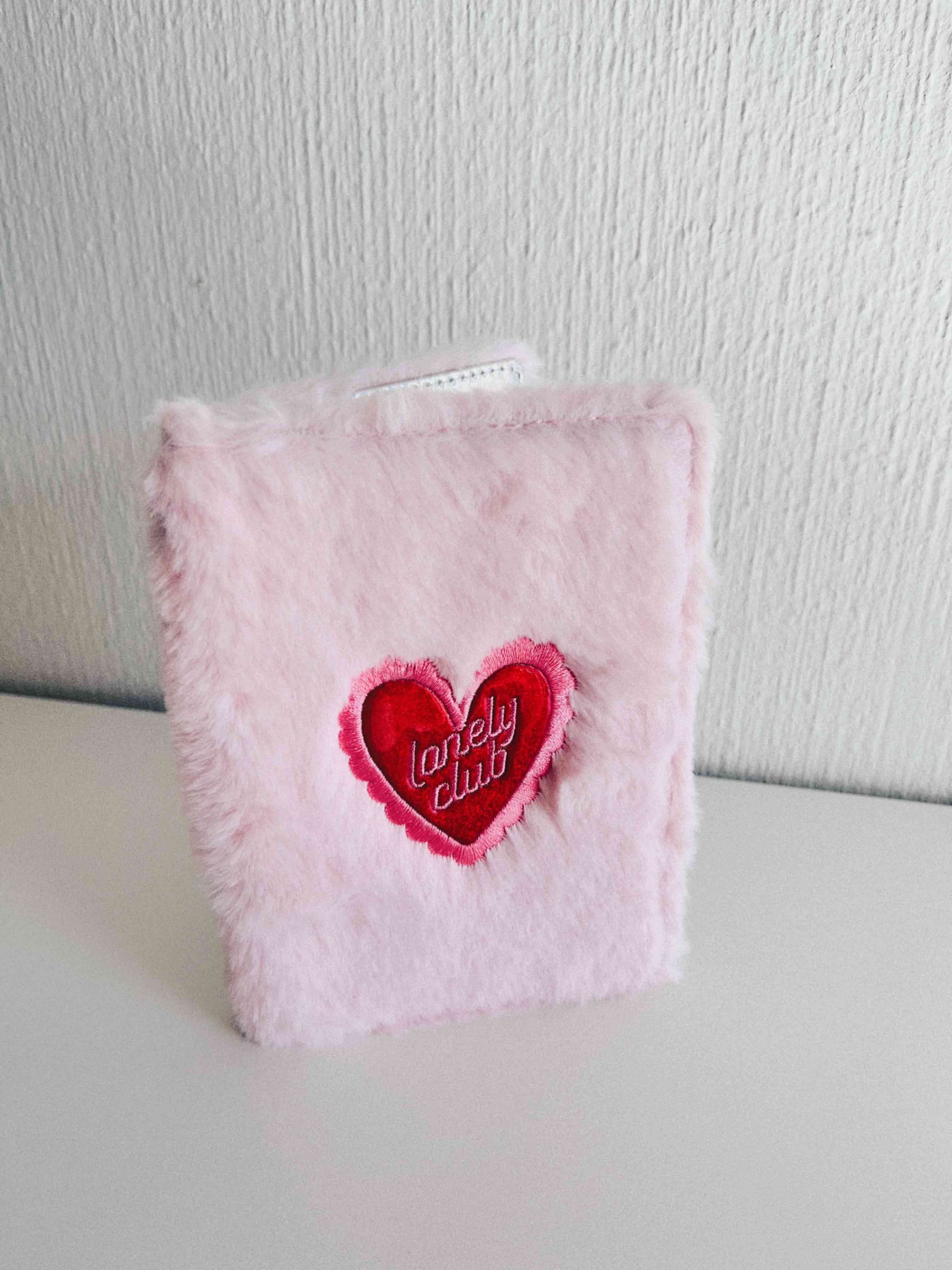 Porta pasaporte peludo rosa con corazón