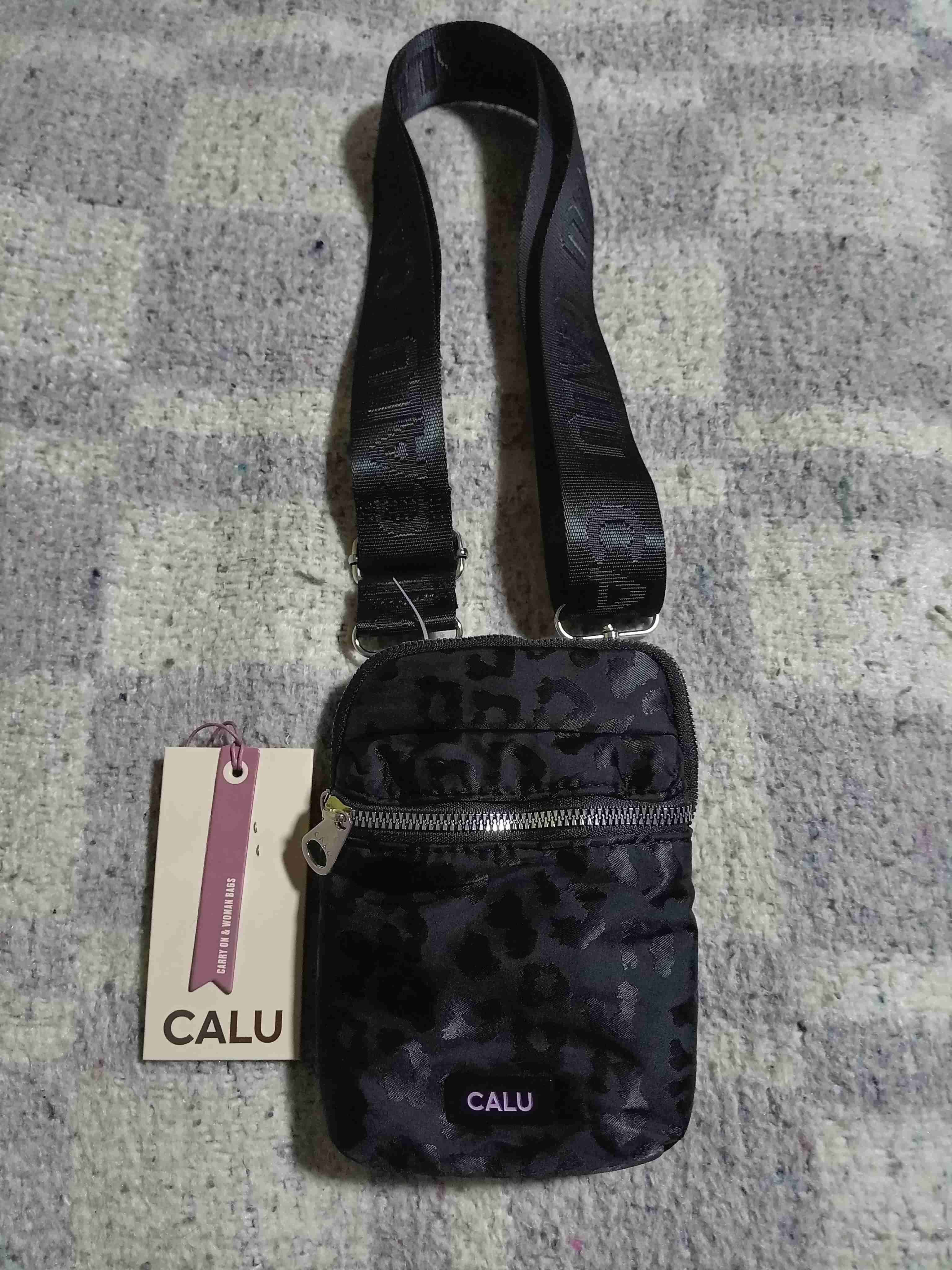 Bolso bandolero de la marca CALU en color negro con estampado sutil. Ideal para uso diario y mantener tus cosas organizadas. En excelente estado, nuevo. Para guardar el celular.