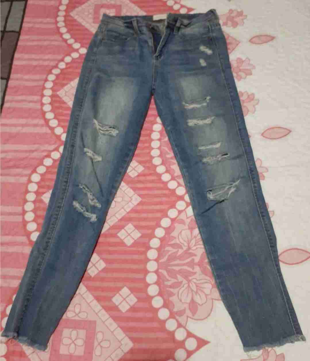 Jeans estilo desgastado, perfectos para un look casual. En buen estado con algunas roturas. Talla mediana.
