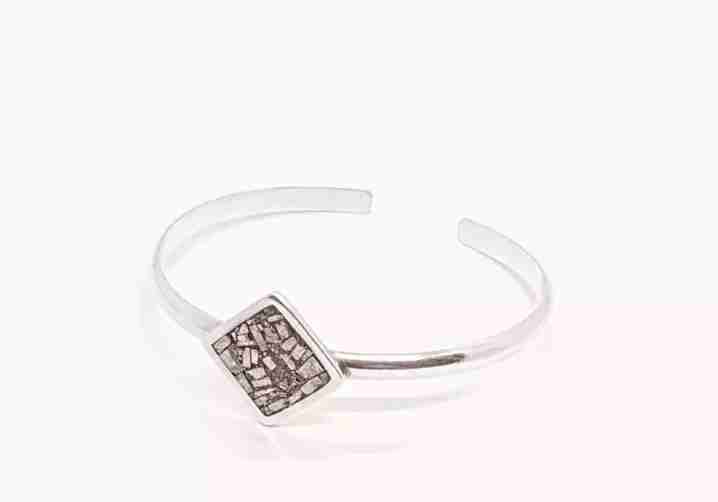 Linda pulsera de plata 950 hecha a mano, con adorno cuadrado con pirita, pesa 15.4 grs, diámetro 6cms. Esta pulsera presenta un diseño contemporáneo y único, será un gran complemento para tú día a día