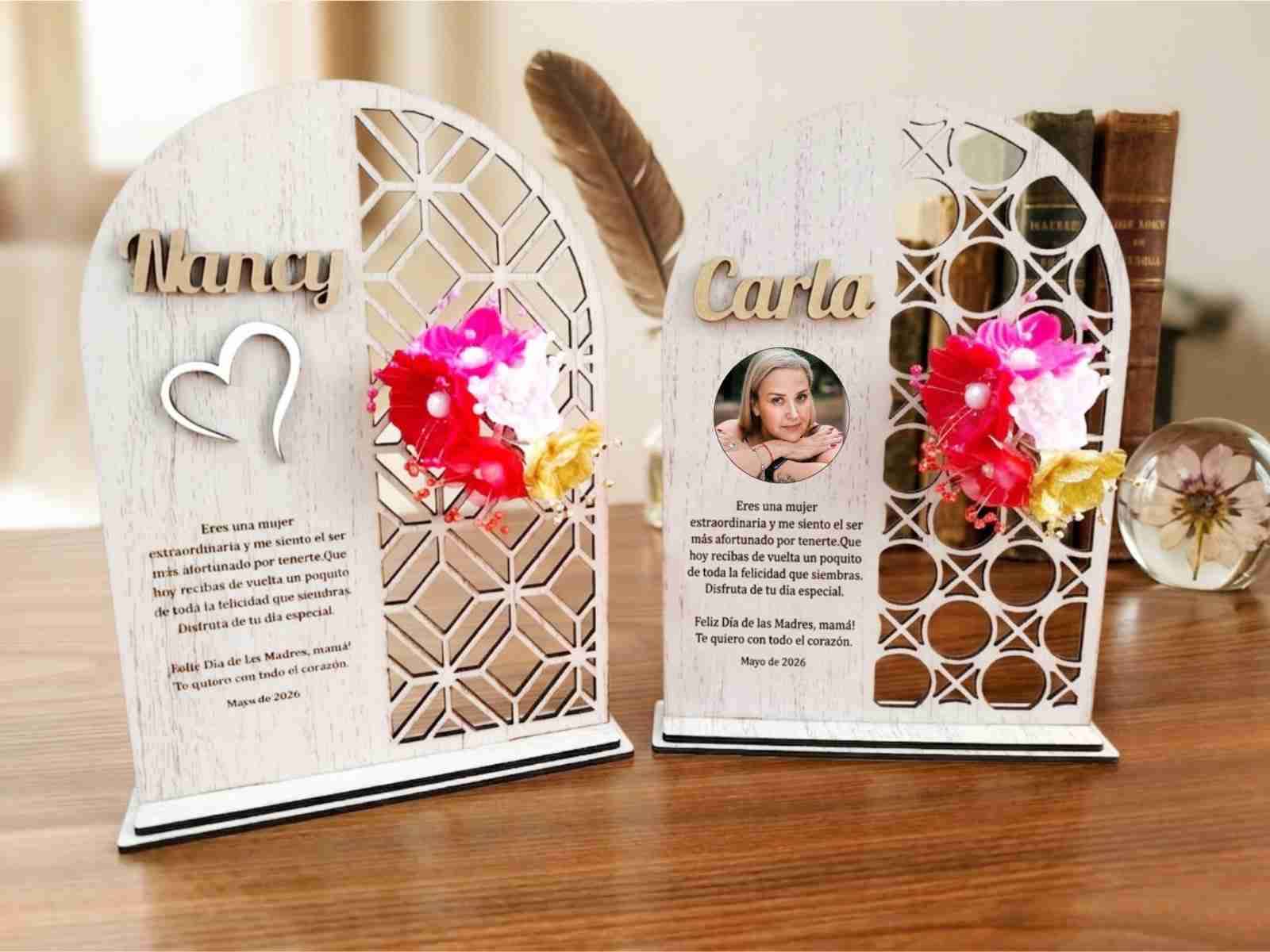 Hermoso regalo de sobre escritorio personalizado con nombres o fltlgrafia, ideal para regalo o saludo en el día de la madre. 2 Diseños delicados de celosía y flores ornamentales.