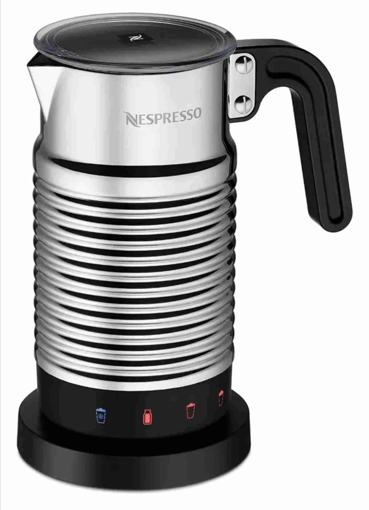 Espumador de leche de acero inoxidable, ideal para preparar cappuccinos. Nuevo en caja, sellado, comprobable.