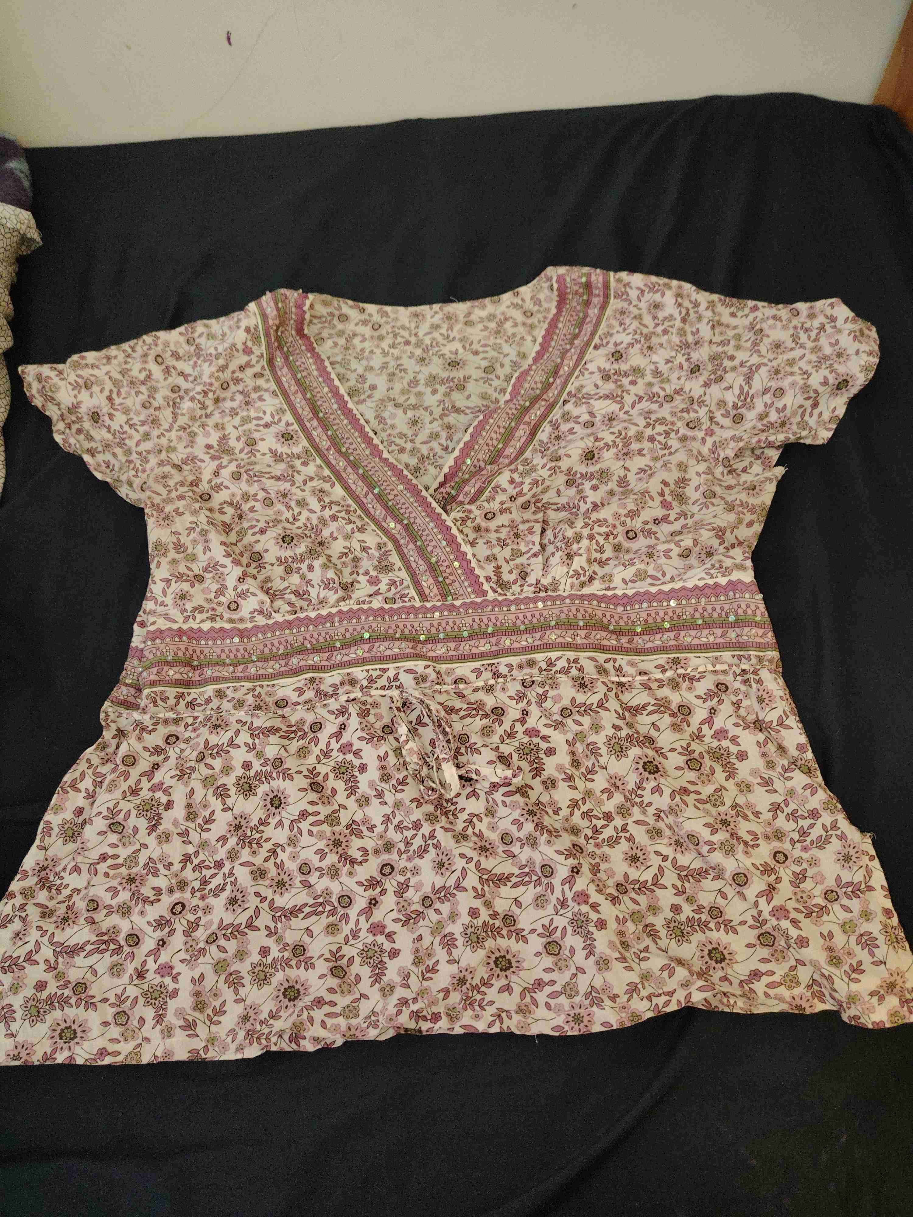 Blusa bohemia con estampado floral, estilo relajado ideal para uso diario. Buen estado general.