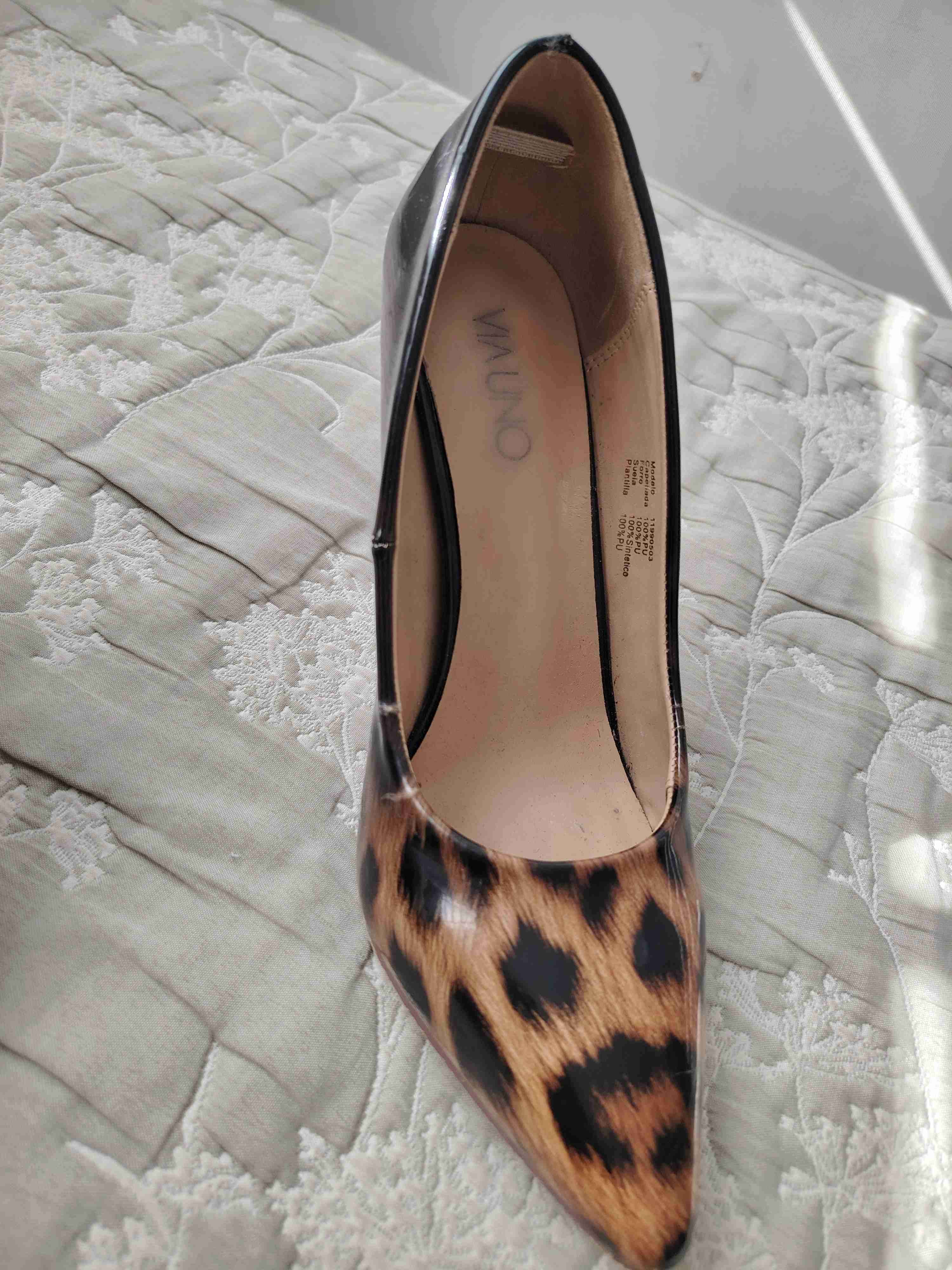 Tacón alto con diseño de leopardo. Ideal para ocasiones especiales. Buen estado general.