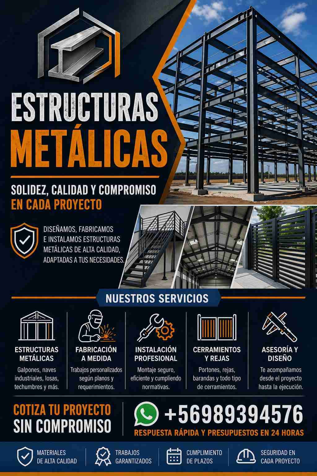 Diseñamos y fabricamos estructuras metálicas de alta calidad, adaptadas a tus necesidades. Ideal para galpones, techumbres y más.