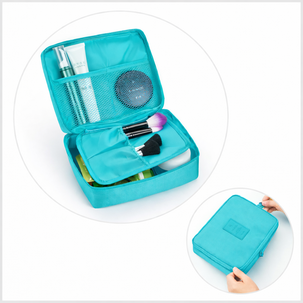 Práctico neceser color turquesa. Ideal para llevar cosméticos. En buen estado.
