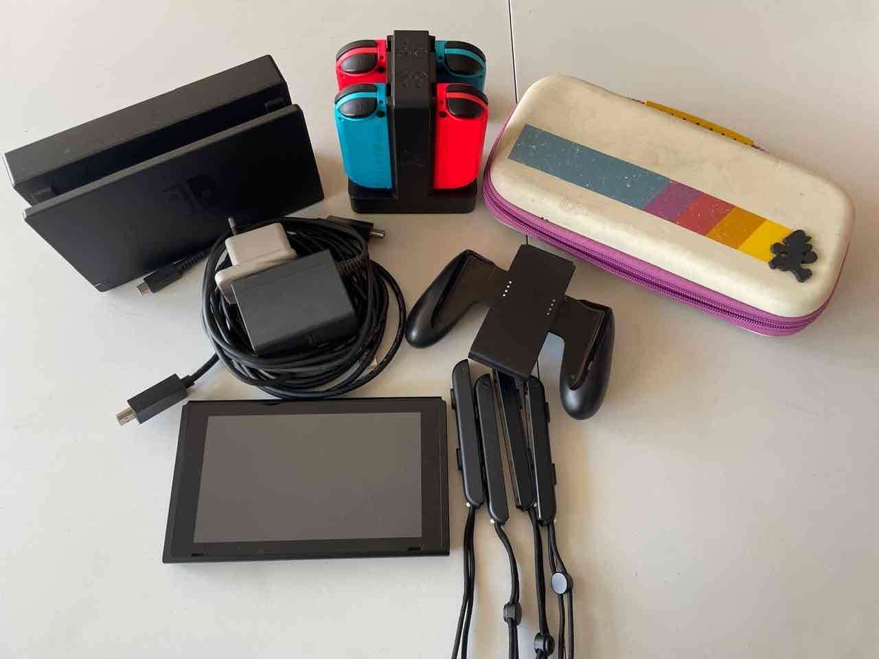 Consola Nintendo Switch en buen estado con mandos y estuche. Ideal para juegos en casa o portátil. Muy poco uso -Nintendo switch -Cable y HDMI -Dock -4 joycons (1 malo) -Cargador para los 4 joycons -Estuche rígido -Tarjeta de memoria
