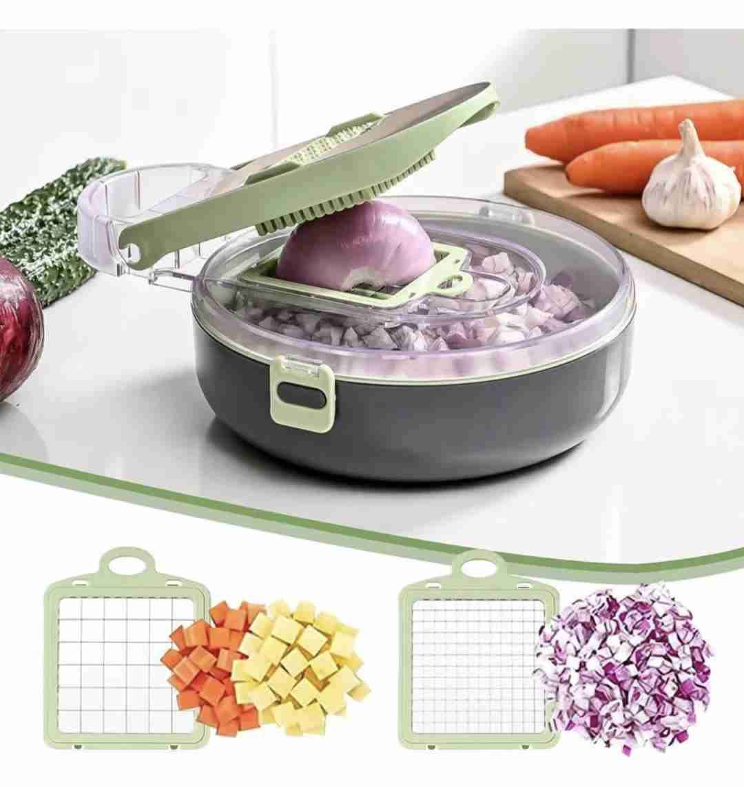 Práctico cortador de verduras con múltiples rejillas para diferentes cortes. Ideal para ahorrar tiempo en la cocina.