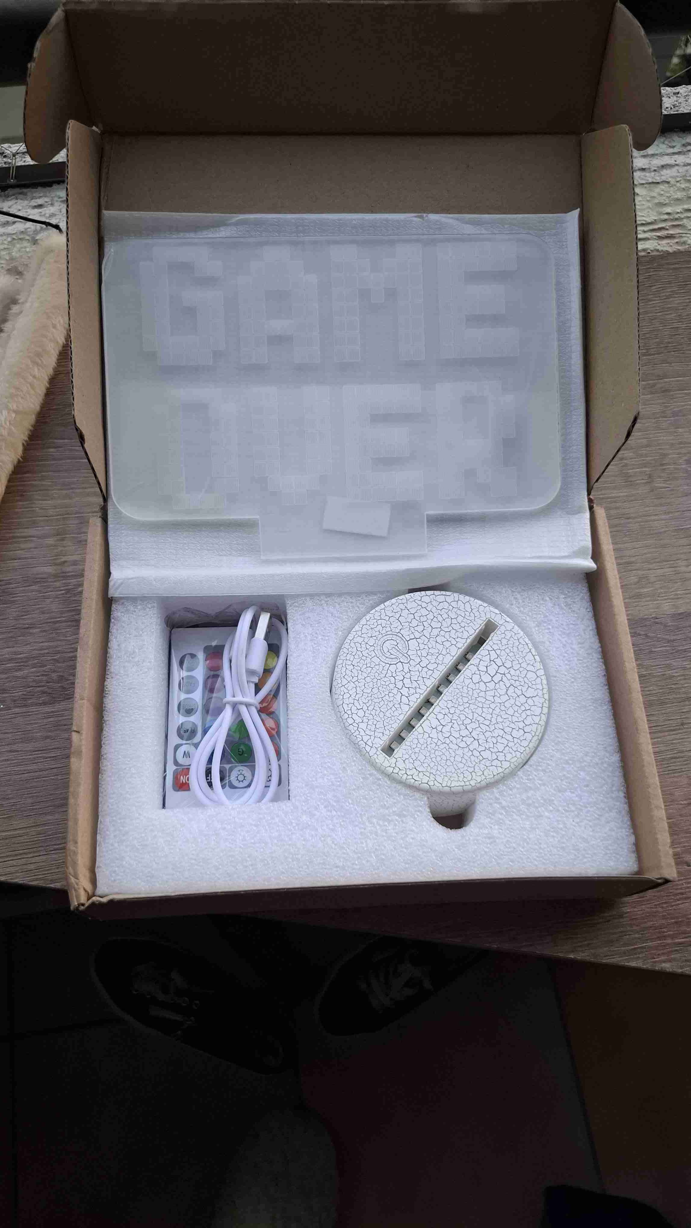 Lámpara decorativa LED con diseño 'Game Over'. Incluye control remoto para cambiar colores. Ideal para gamers.