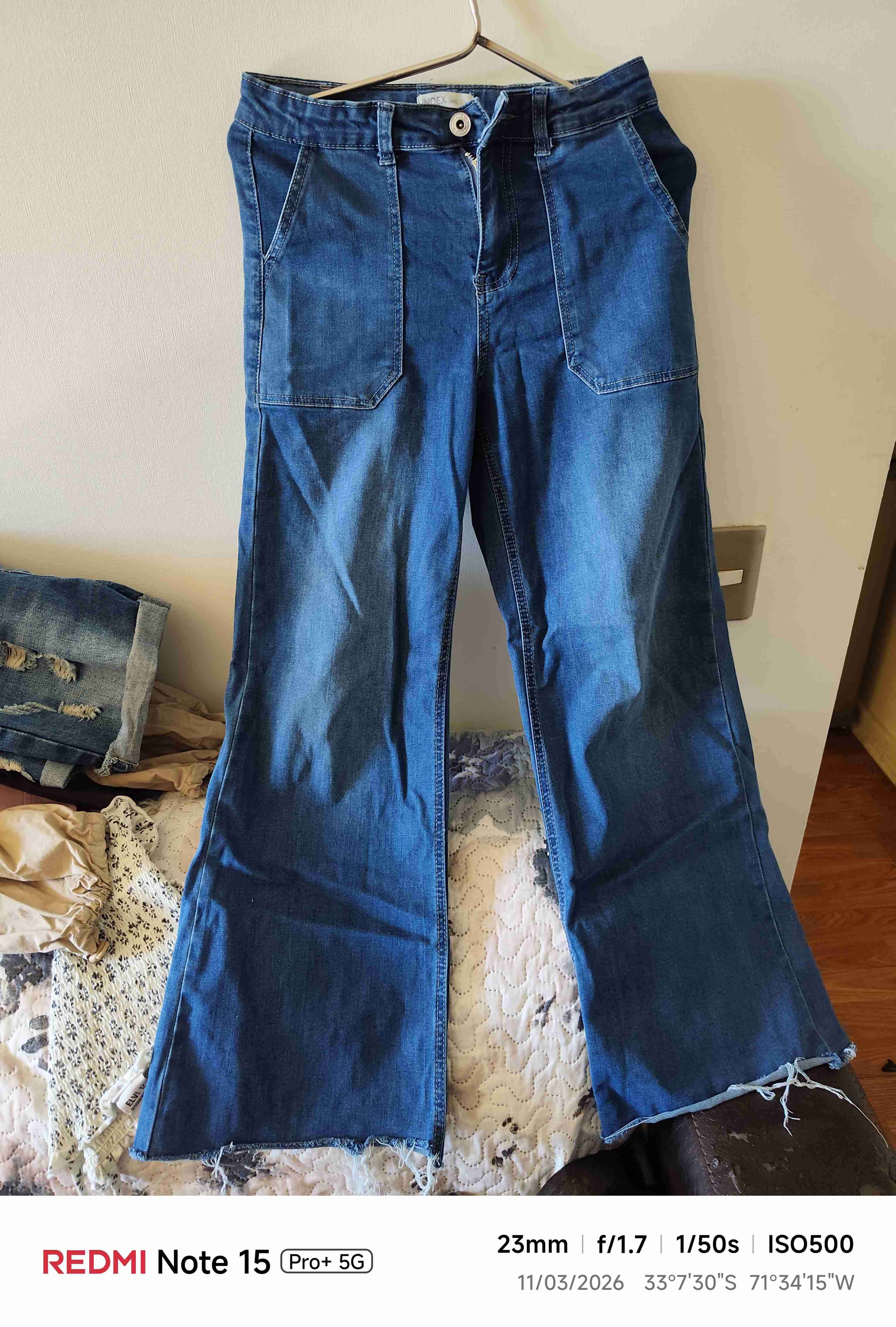 Jeans acampanados en buen estado, perfectos para un look casual. Dobladillo deshilachado moderno.