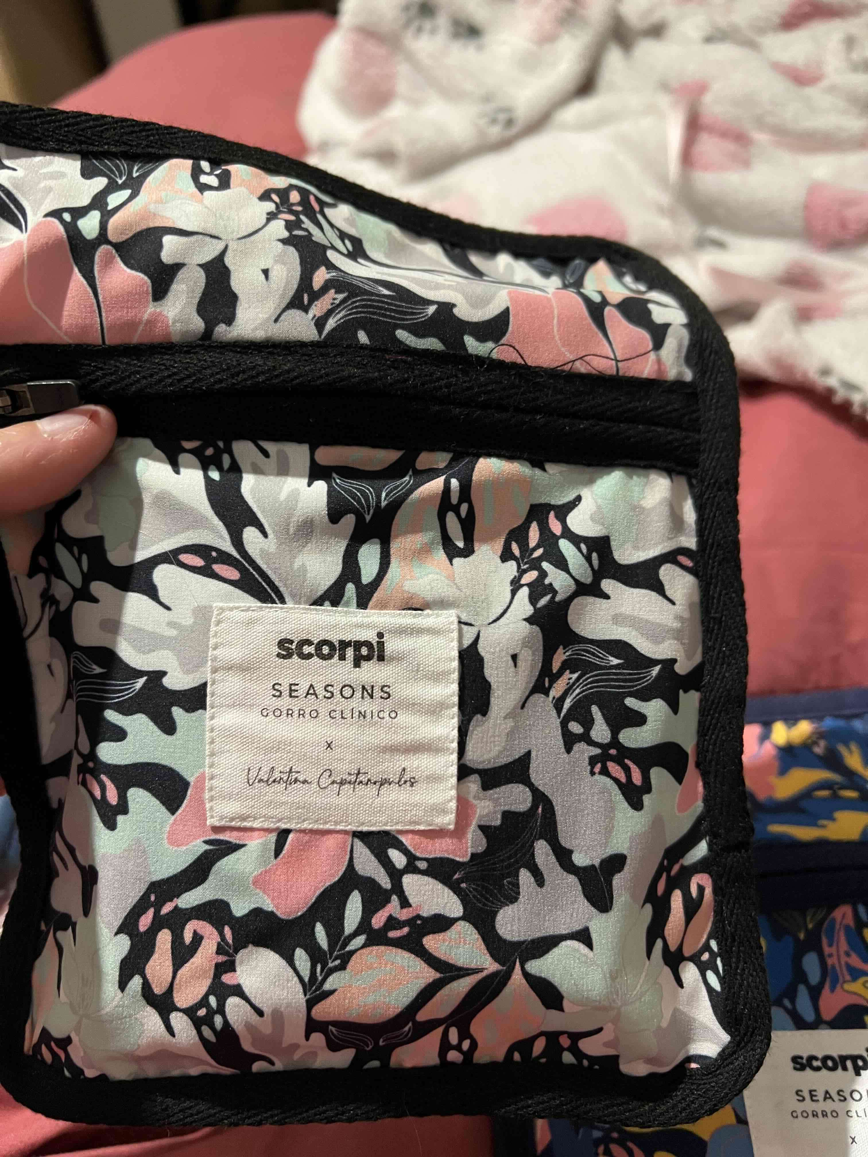 Gorro clínico colorido de Scorpi Seasons. Ideal para profesionales de la salud. Sin uso.