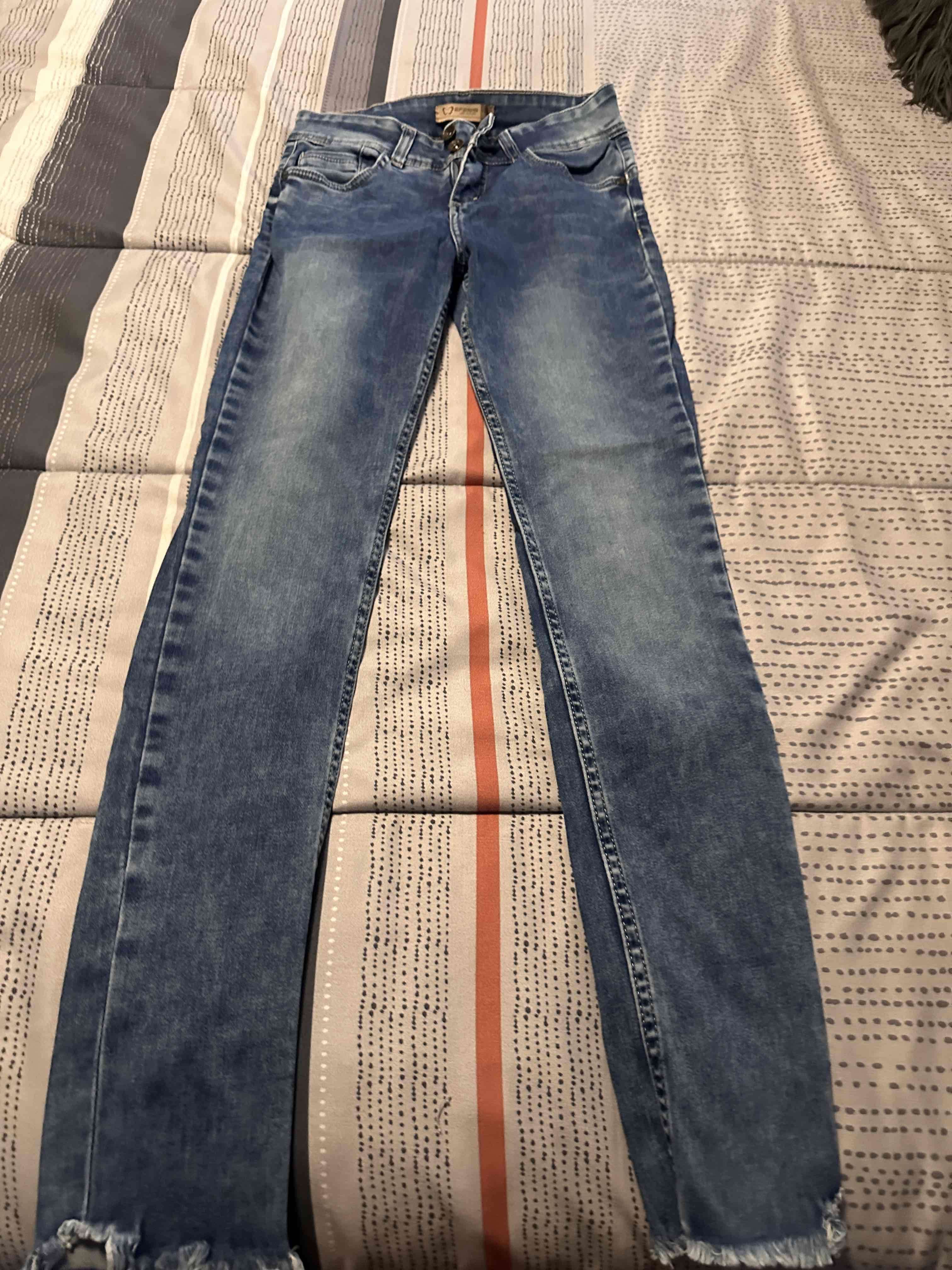 Jeans azul claro con estilo desgastado. Perfectos para uso diario, en buen estado general.