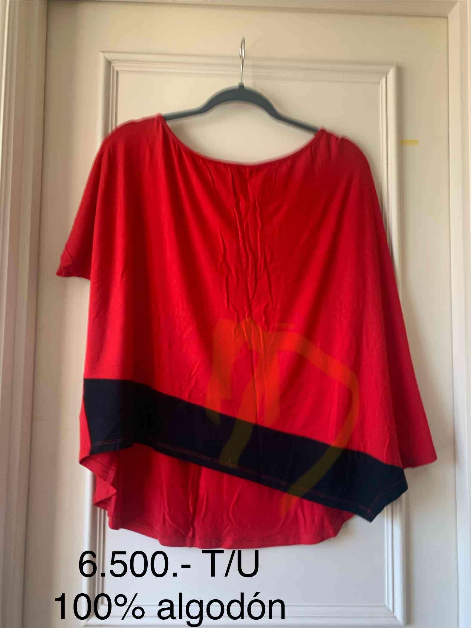 Polera roja con detalle negro, talla única, perfecta para uso casual. Buen estado general. 100% Algodón