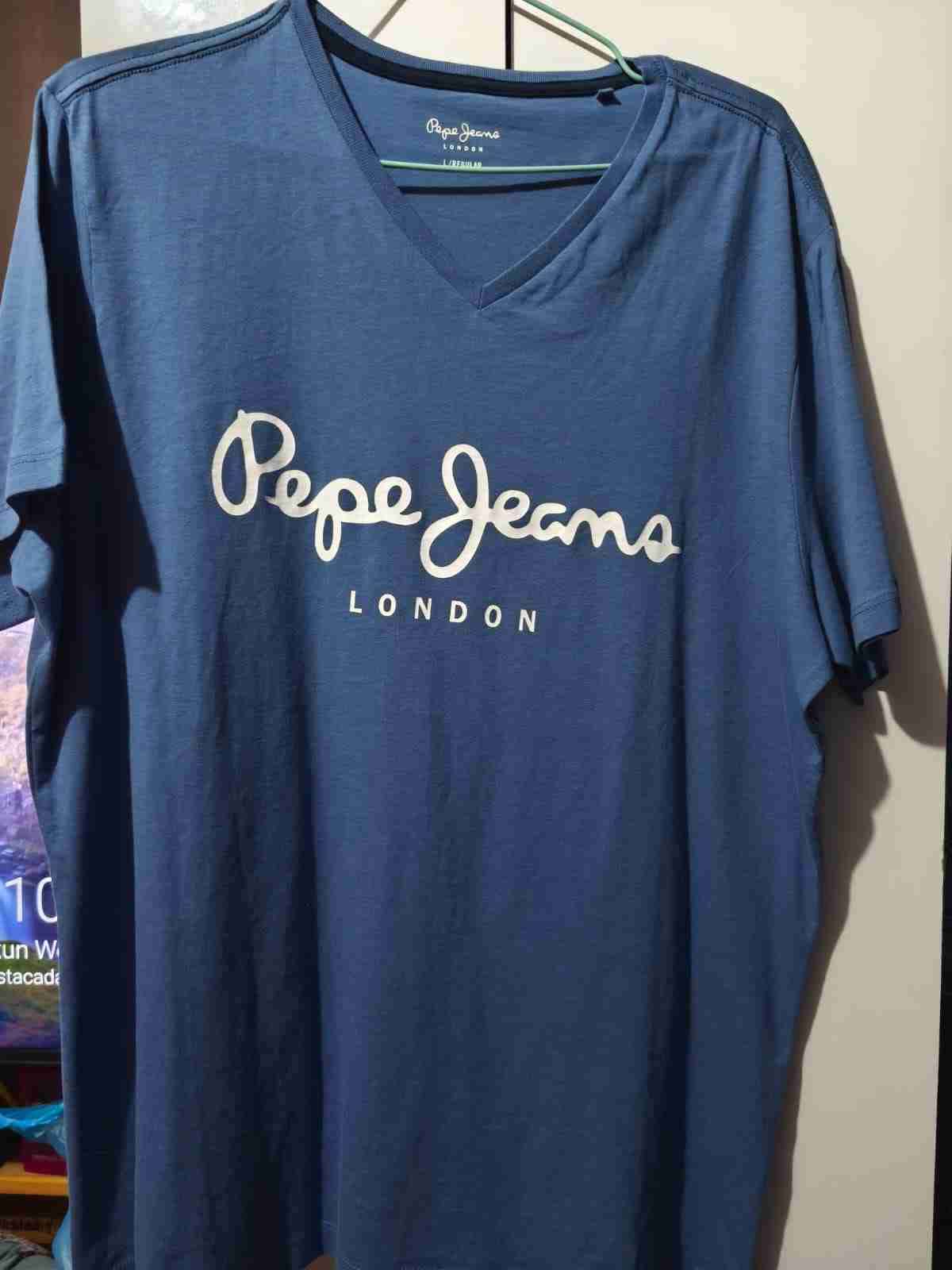 Polera azul con cuello en V de Pepe Jeans, cómoda y casual. Ideal para uso diario.