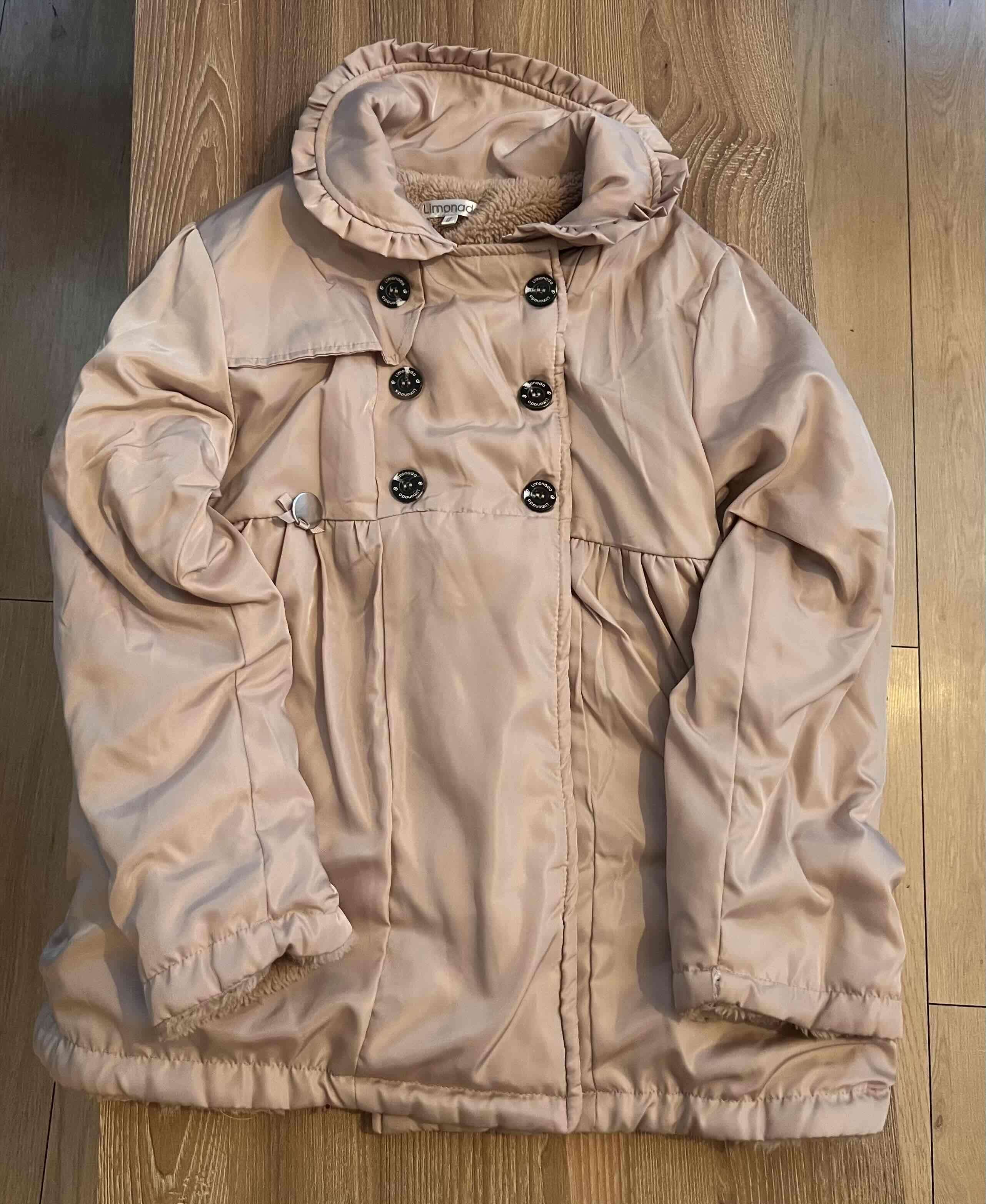 Abrigo beige, estilo clásico con doble botonadura y capucha, ideal para el invierno. En buen estado.