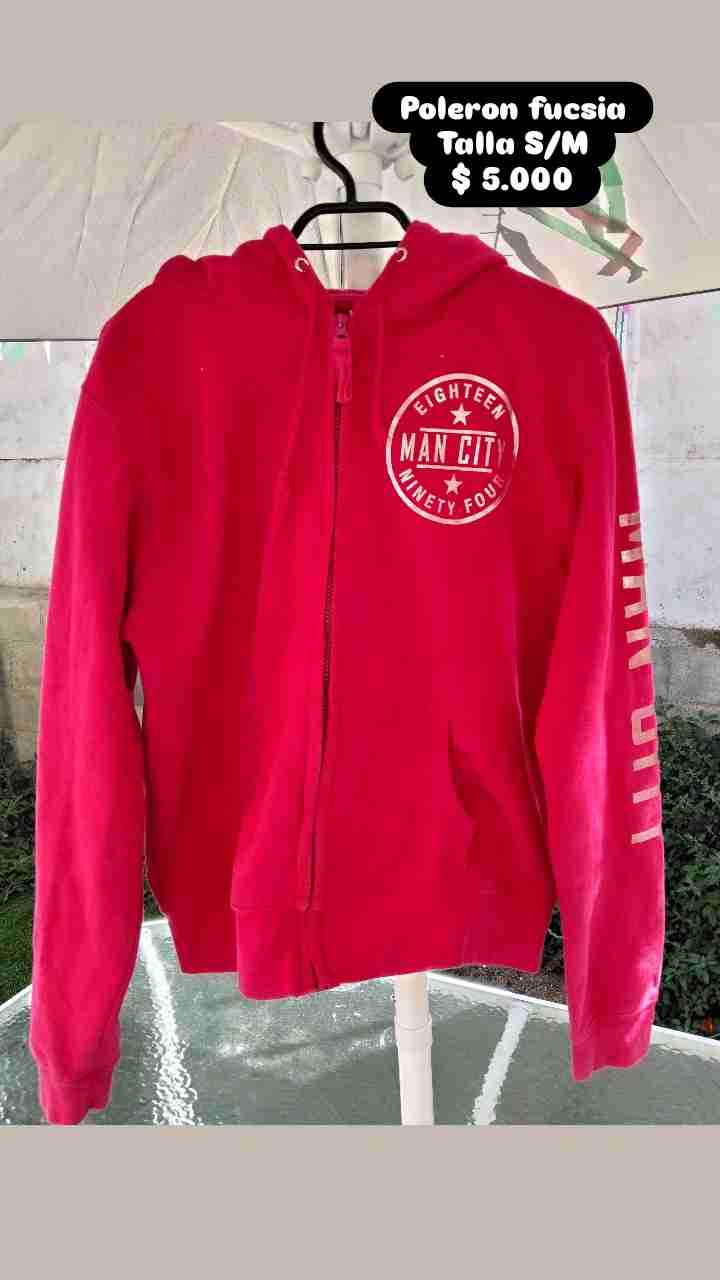 Polerón de color fucsia, con capucha y cierre delantero. Ideal para uso casual.