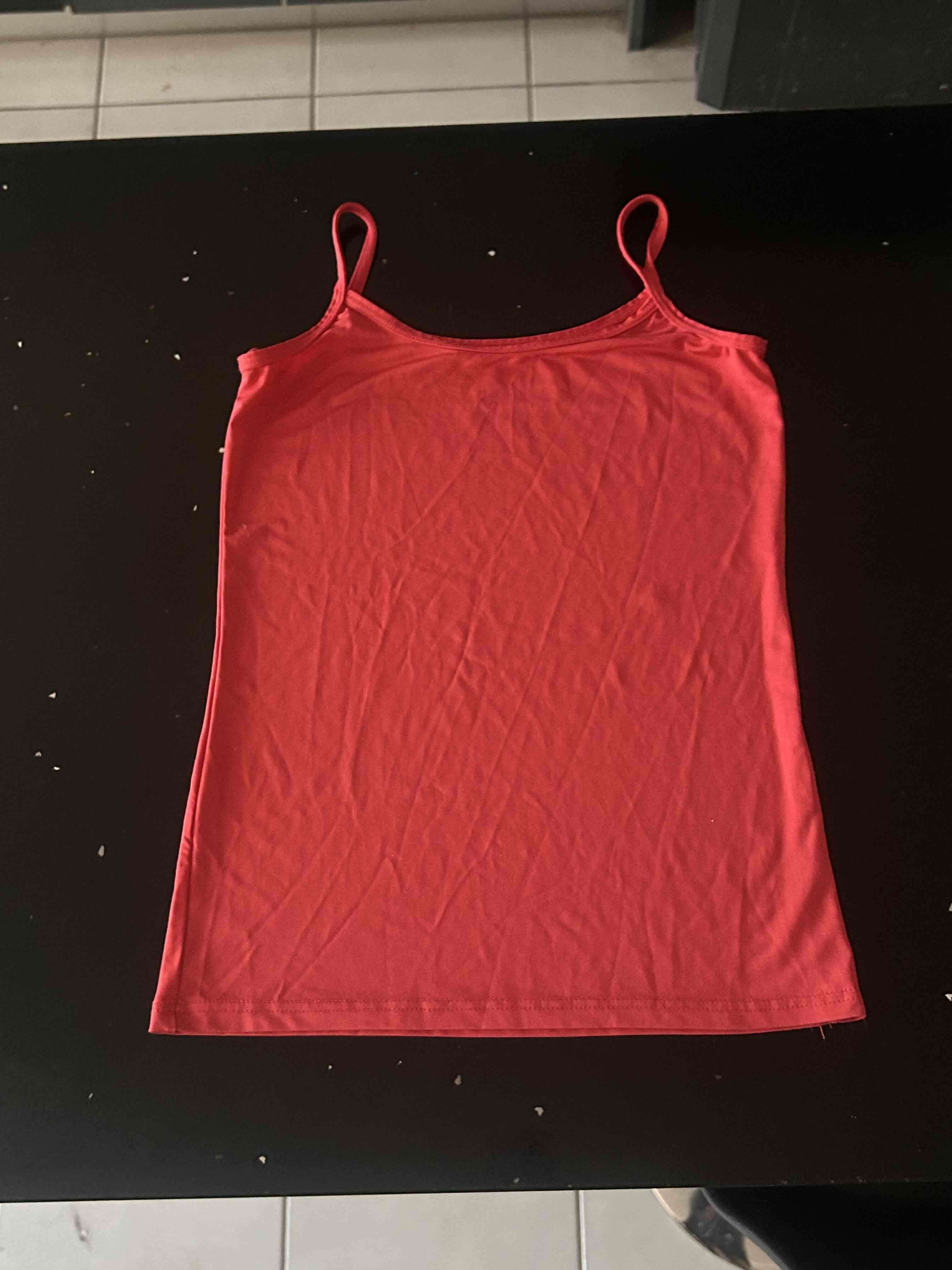 Polera sin mangas de color rojo, en buen estado. Ideal para días cálidos y combinaciones casuales.
