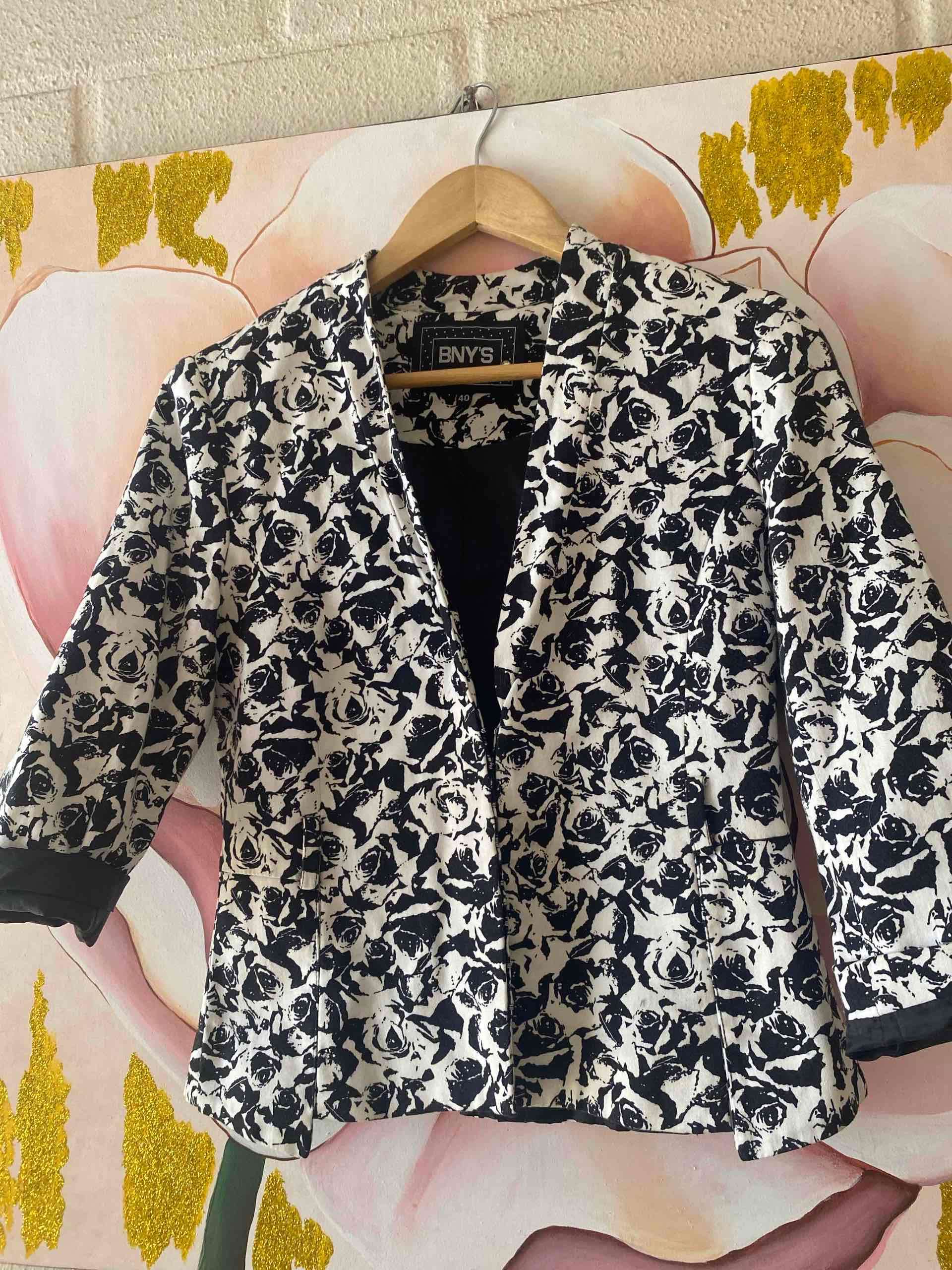 Blazer floreado en blanco y negro