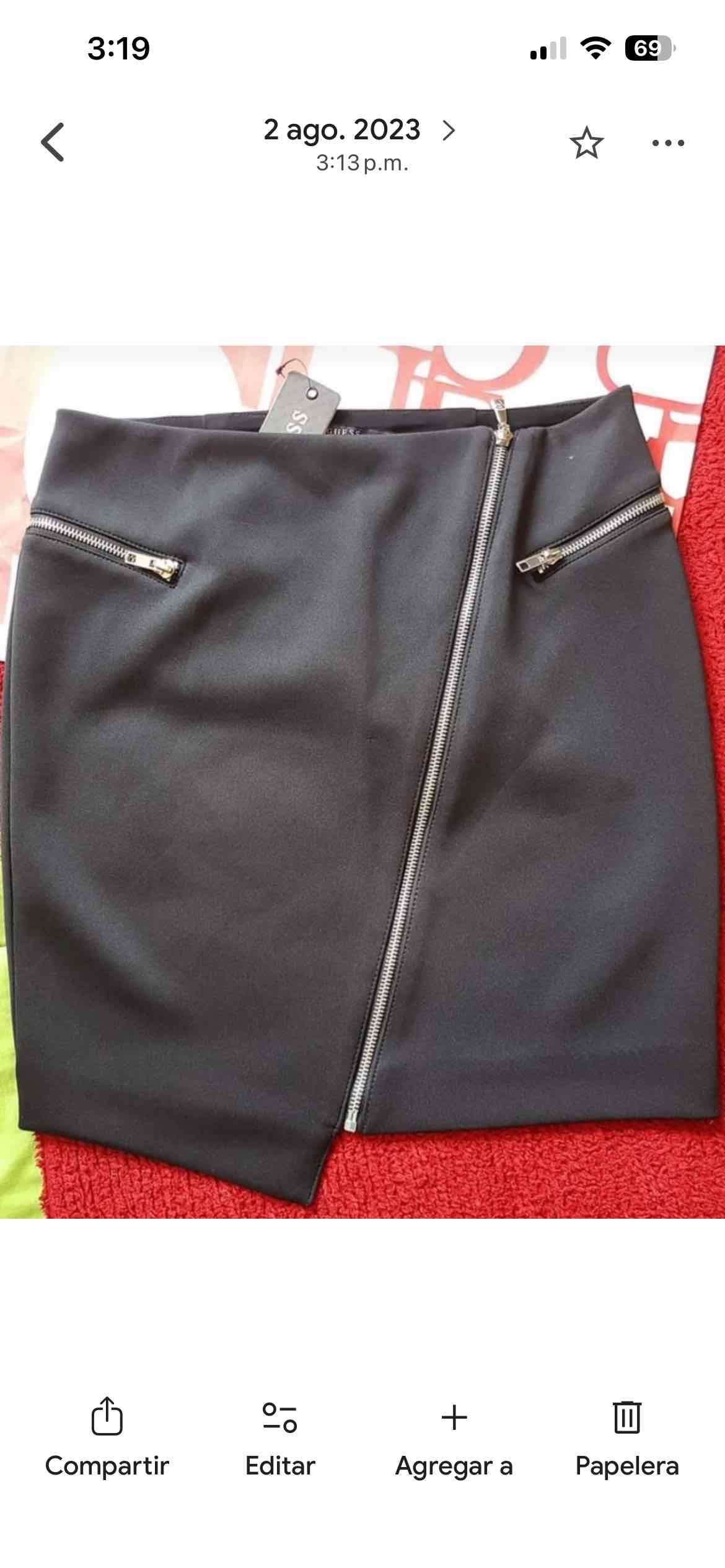 Falda elegante negra con cierre metálico diagonal, nueva nueva marca guess talla M elasticada.