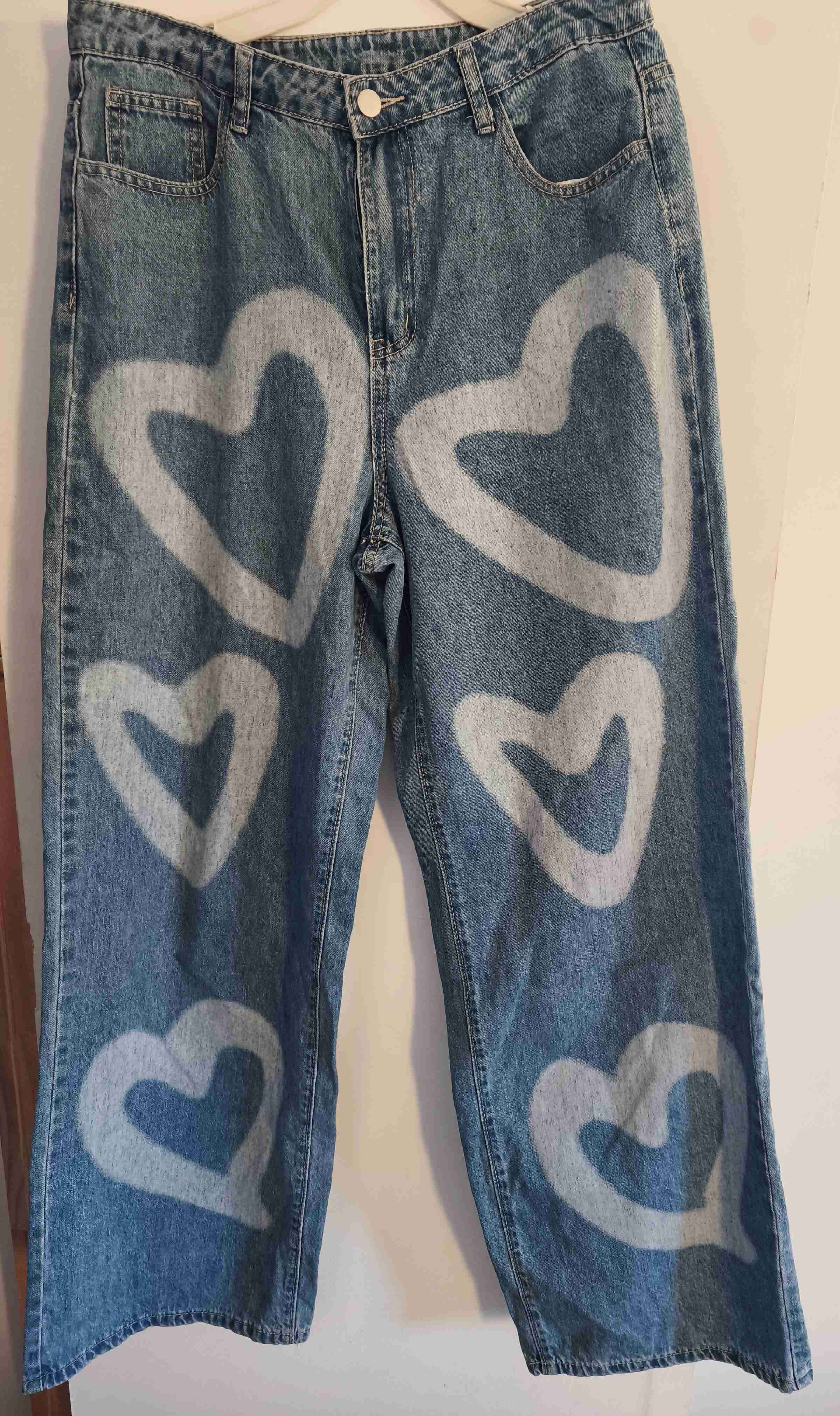 Jeans en buen estado, diseño moderno con corazones. Perfecto para un look casual y juvenil.