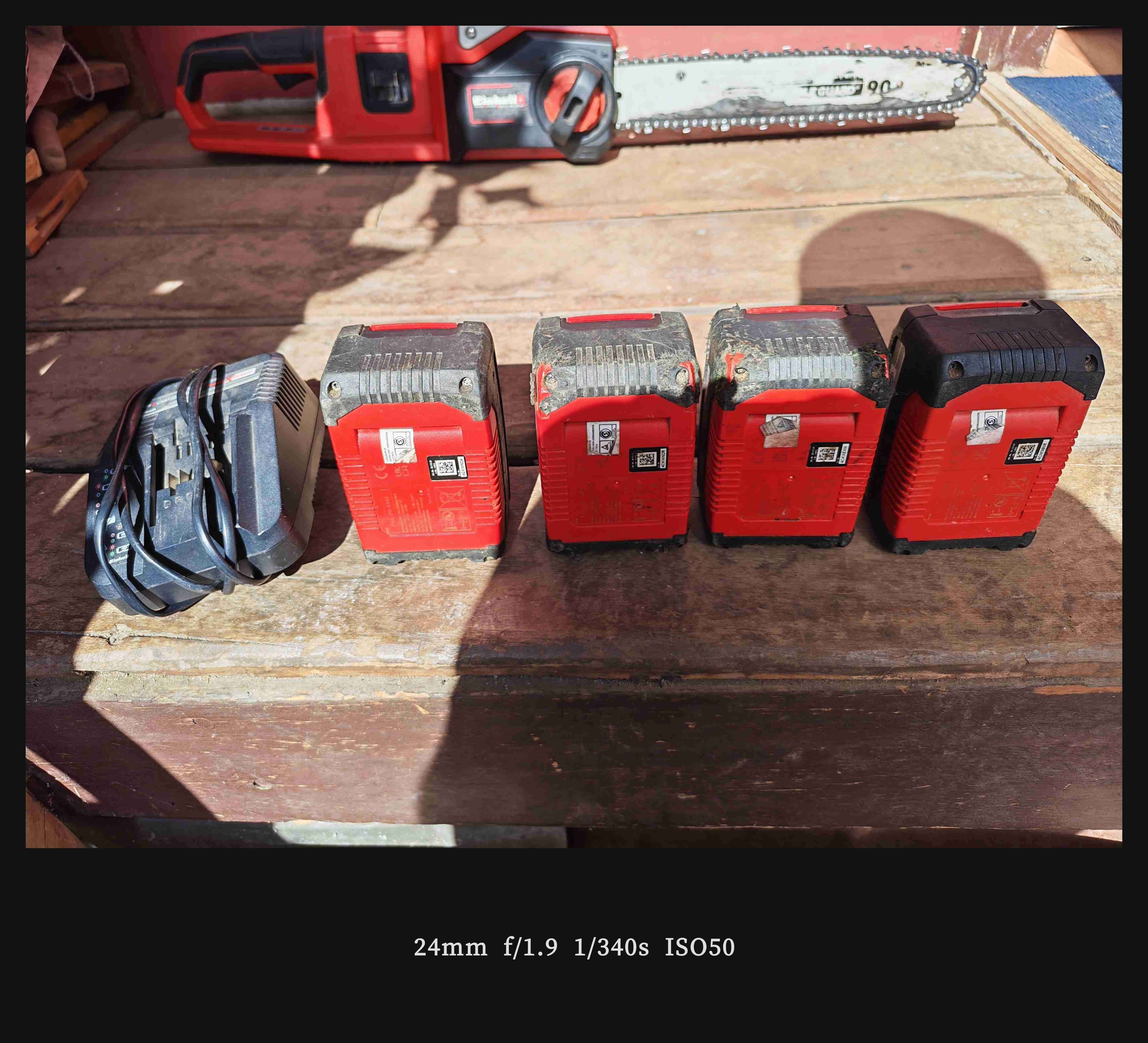 Set de motosierra einhell ge-lc 36/35 Li cargador y cuatro baterías compatible con herramientas eléctricas. Buen estado con signos de uso, se cortaron 200 polines de cerco perimetral, ideal para proyectos de bricolaje y buena potencia. *2 de las baterías tienen daño en gomas protectoras por mordida de perro pero las 4 tienen solo el uso mencionado.