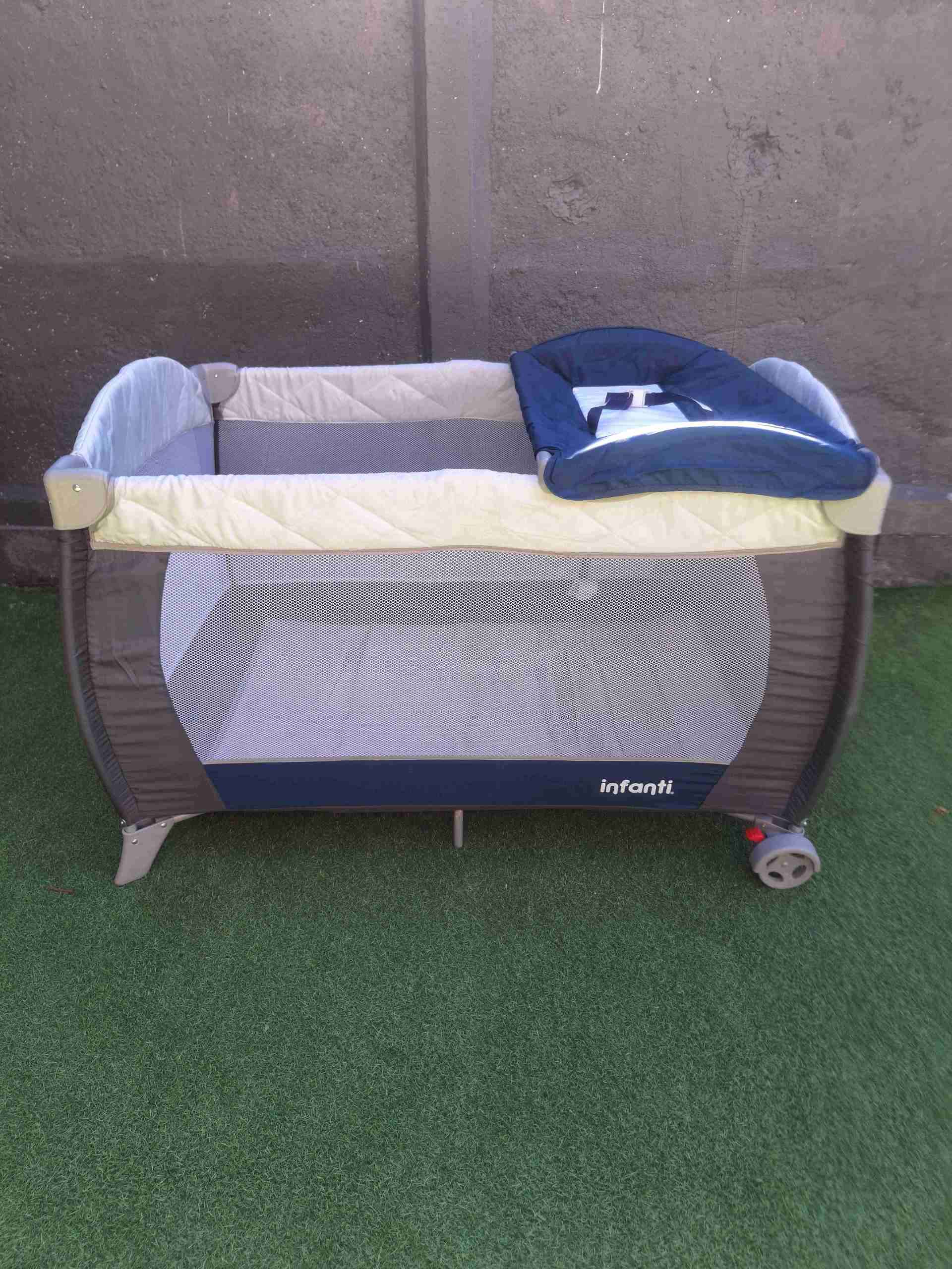 Práctico corral de viaje Infanti en buen estado. Ideal para mantener seguro al bebé mientras juega o duerme.