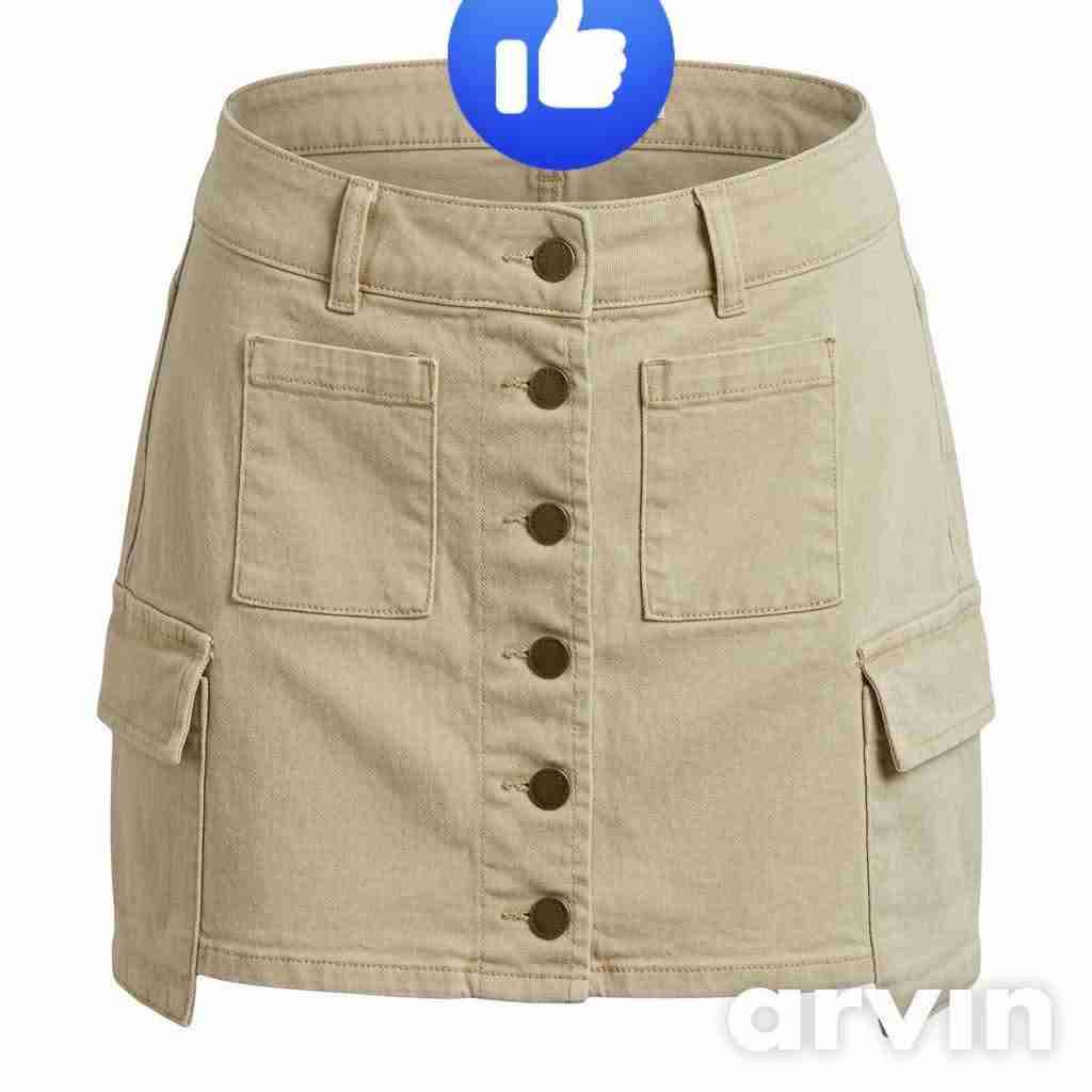 Falda tipo cargo beige con broche frontales y bolsillos. Ideal para primavera y verano, en buen estado.