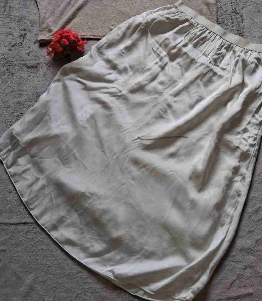 Falda casual beige de tela suave, brillante, ideal para ocasiones formal. Talla s/m.