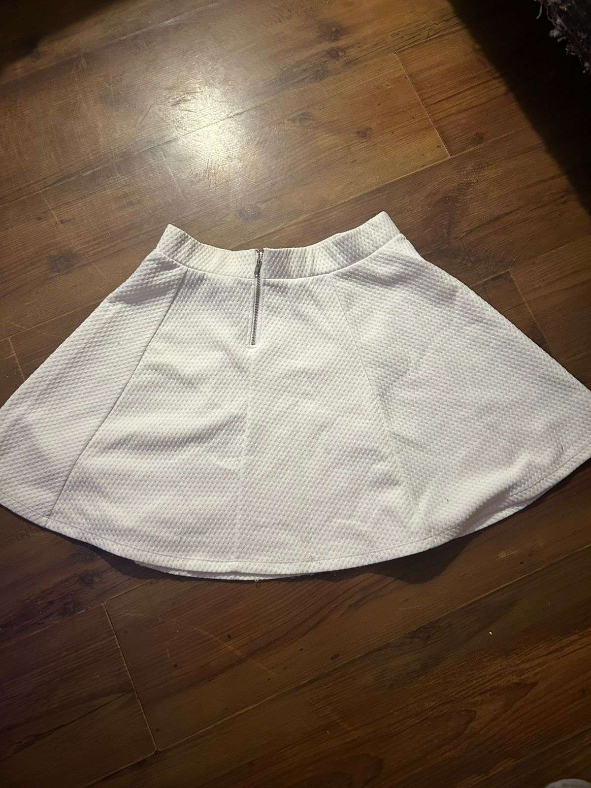 Falda corta de tela texturizada, ideal para primavera. Nueva sin detalles visibles.