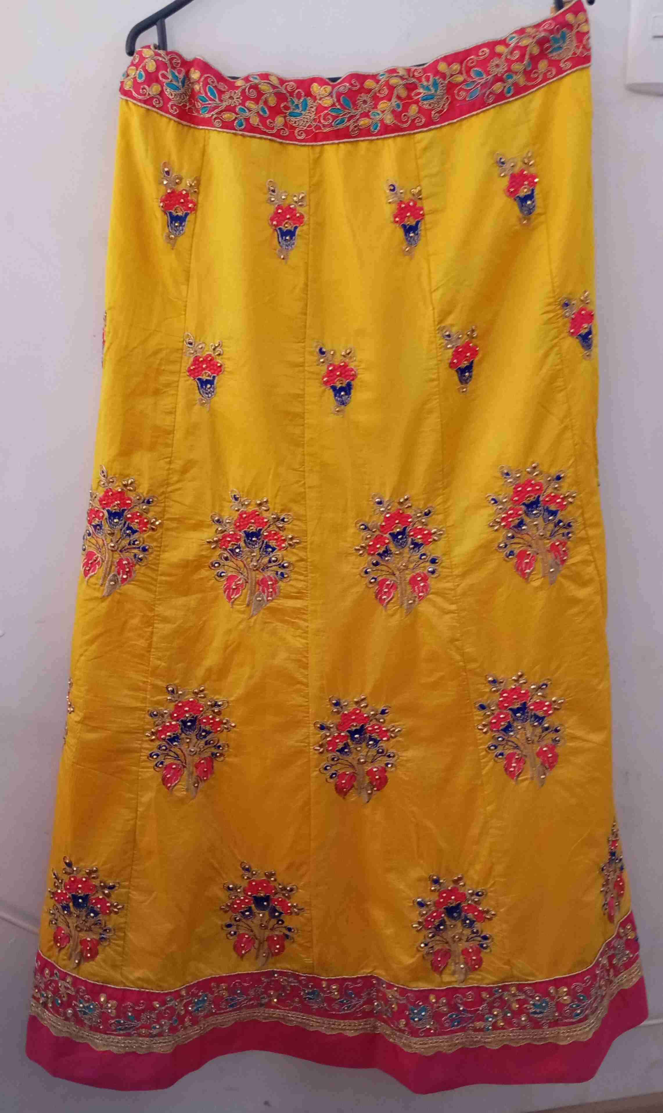 Falda de la India, color amarillo con hermosos bordados florales. Ideal para eventos especiales. En buen estado.