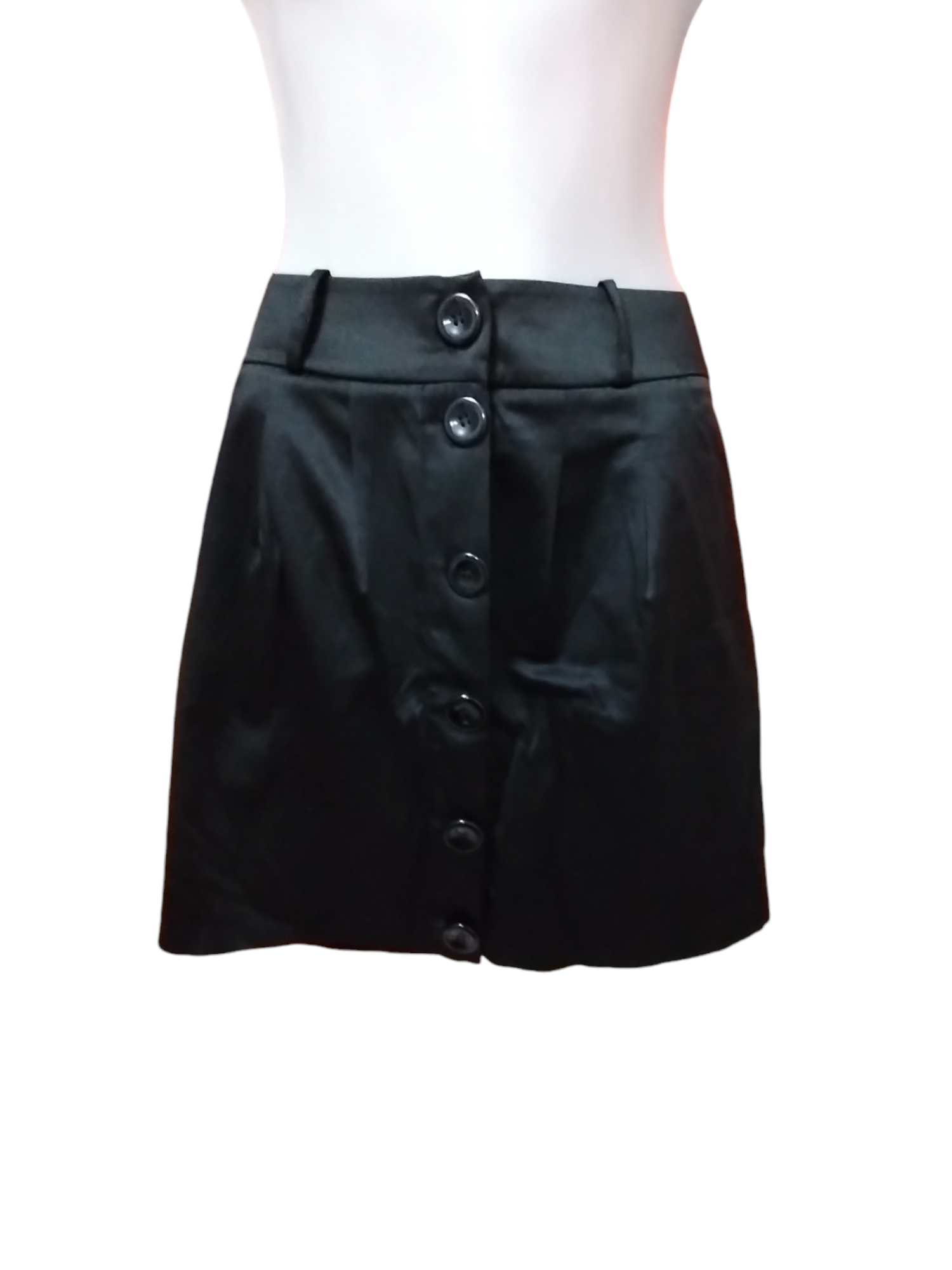 Falda negra elegante con botones frontales. Perfecta para ocasiones formales o casuales. Marca IO. Talla 38.