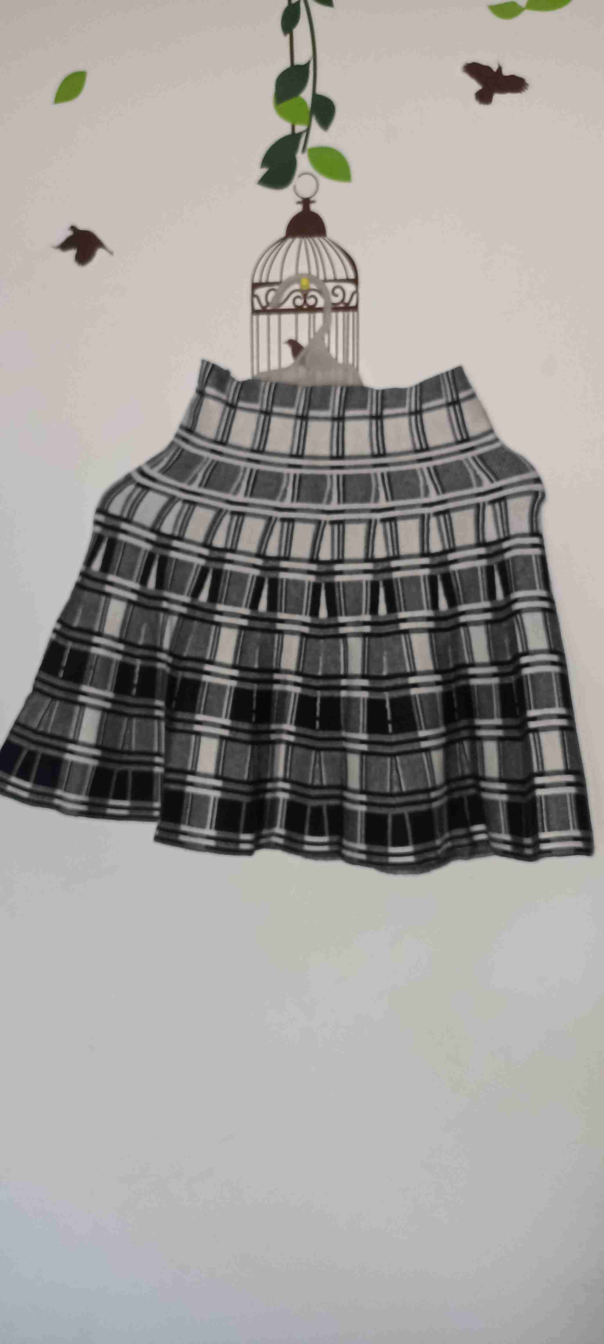 Falda corta con diseño moderno de cuadros. Ideal para lucir en ocasiones casuales. En buen estado.