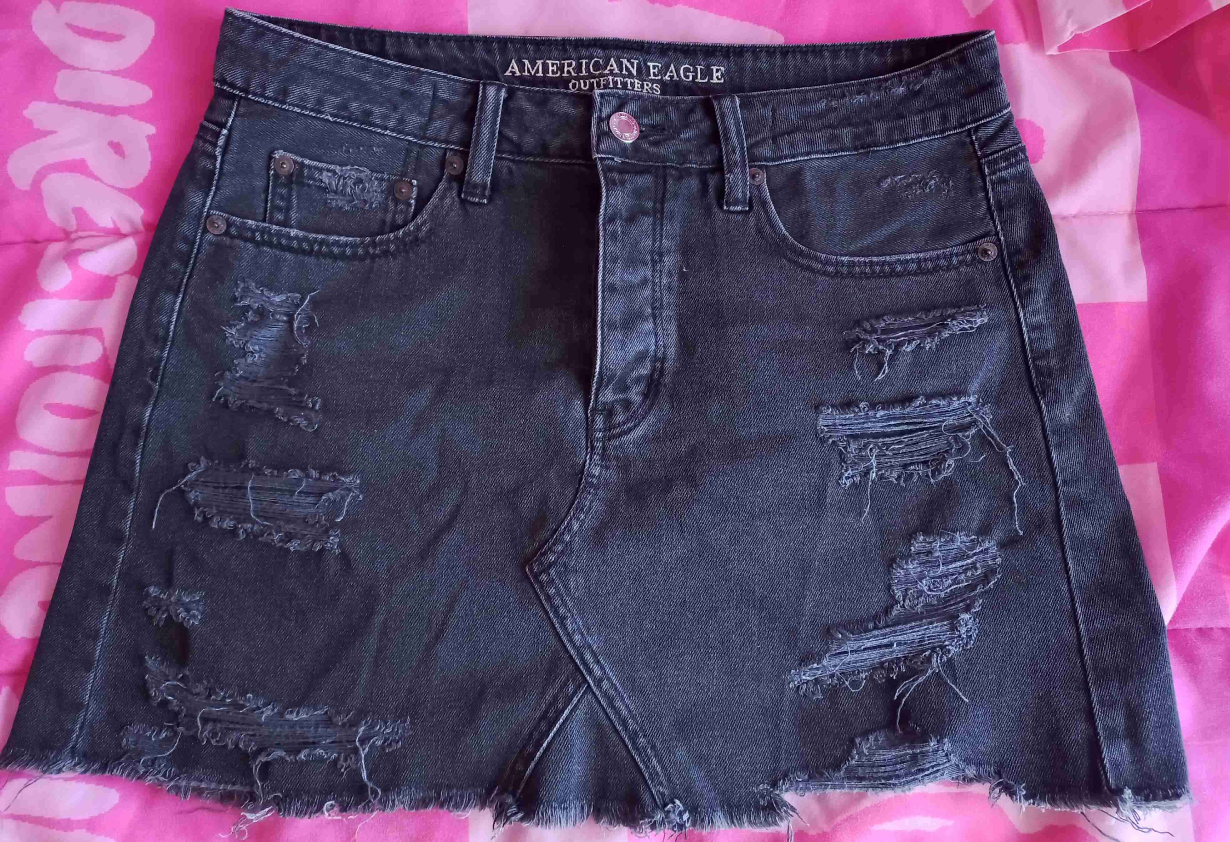 Falda de mezclilla negra, american eagle talla s/m en buen estado general.