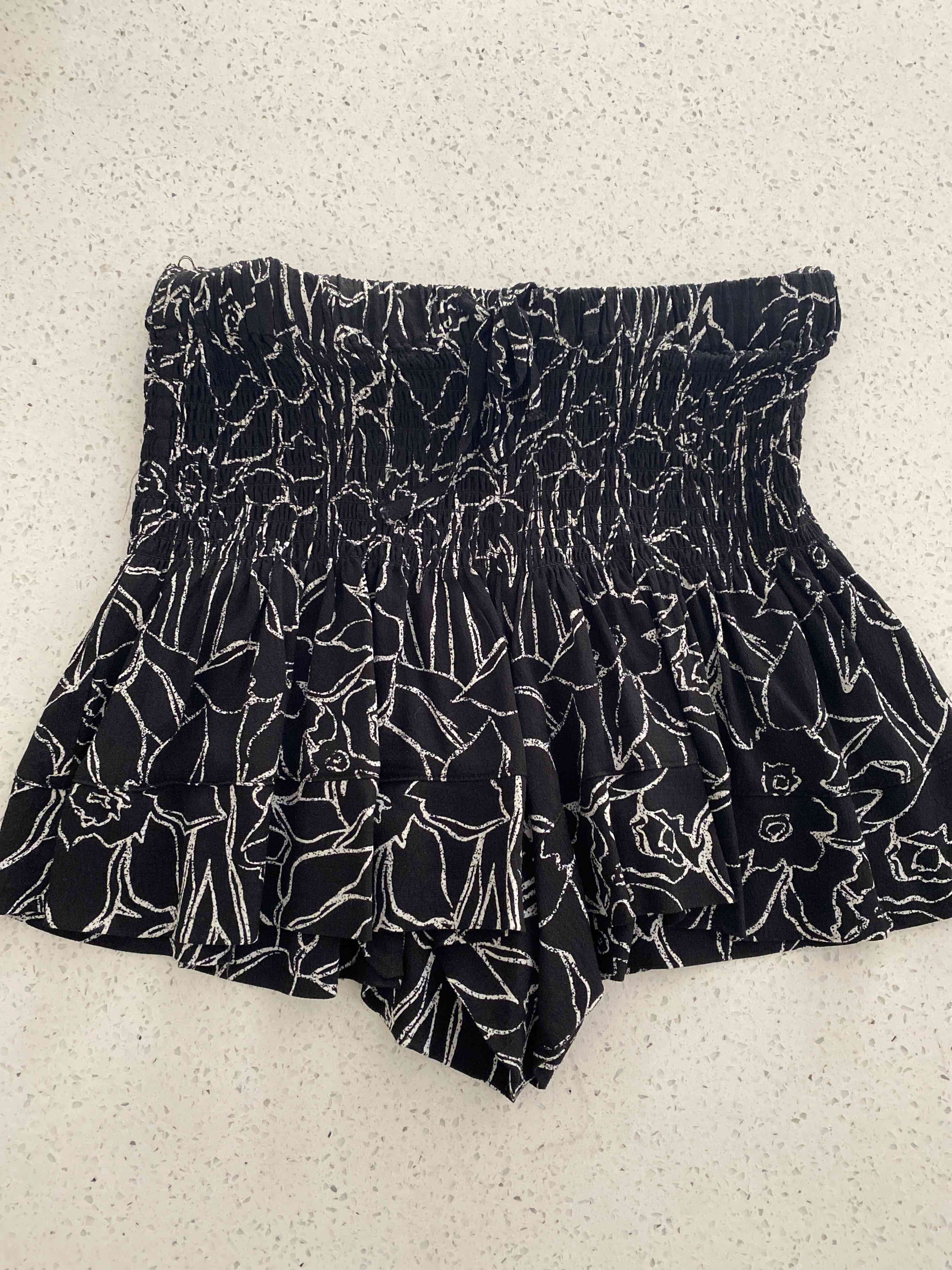 Shorts negros con diseño floral, elasticada talla XS. Muy poco uso frescos y cómodos.