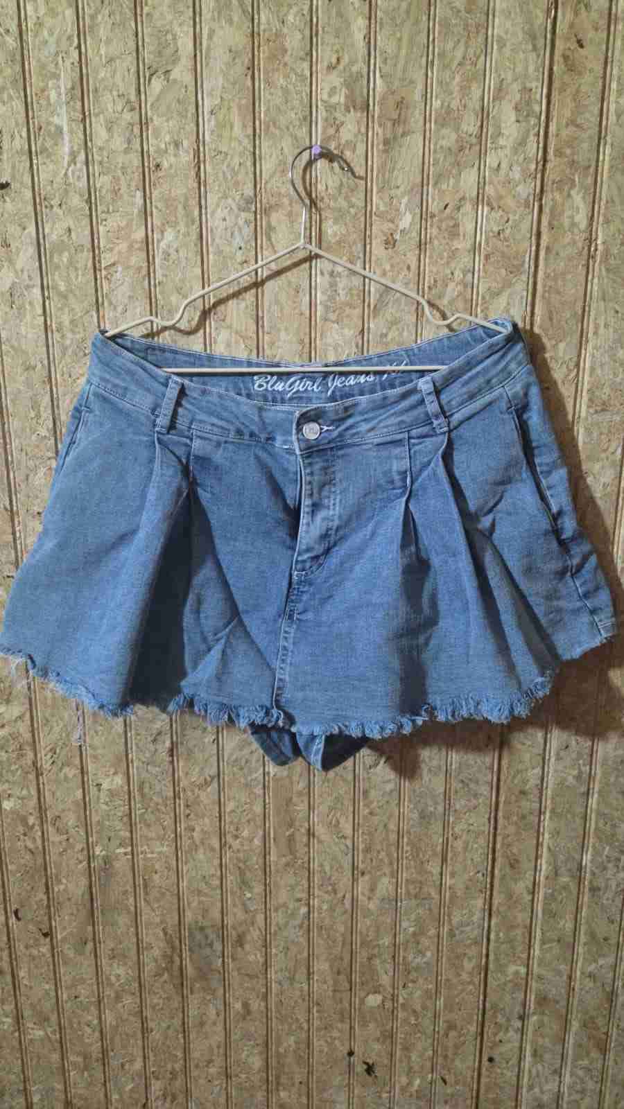 Comoda falda shorts de mezclilla con diseño deshilachado en la terminación. Ideal para el verano, en buen estado.