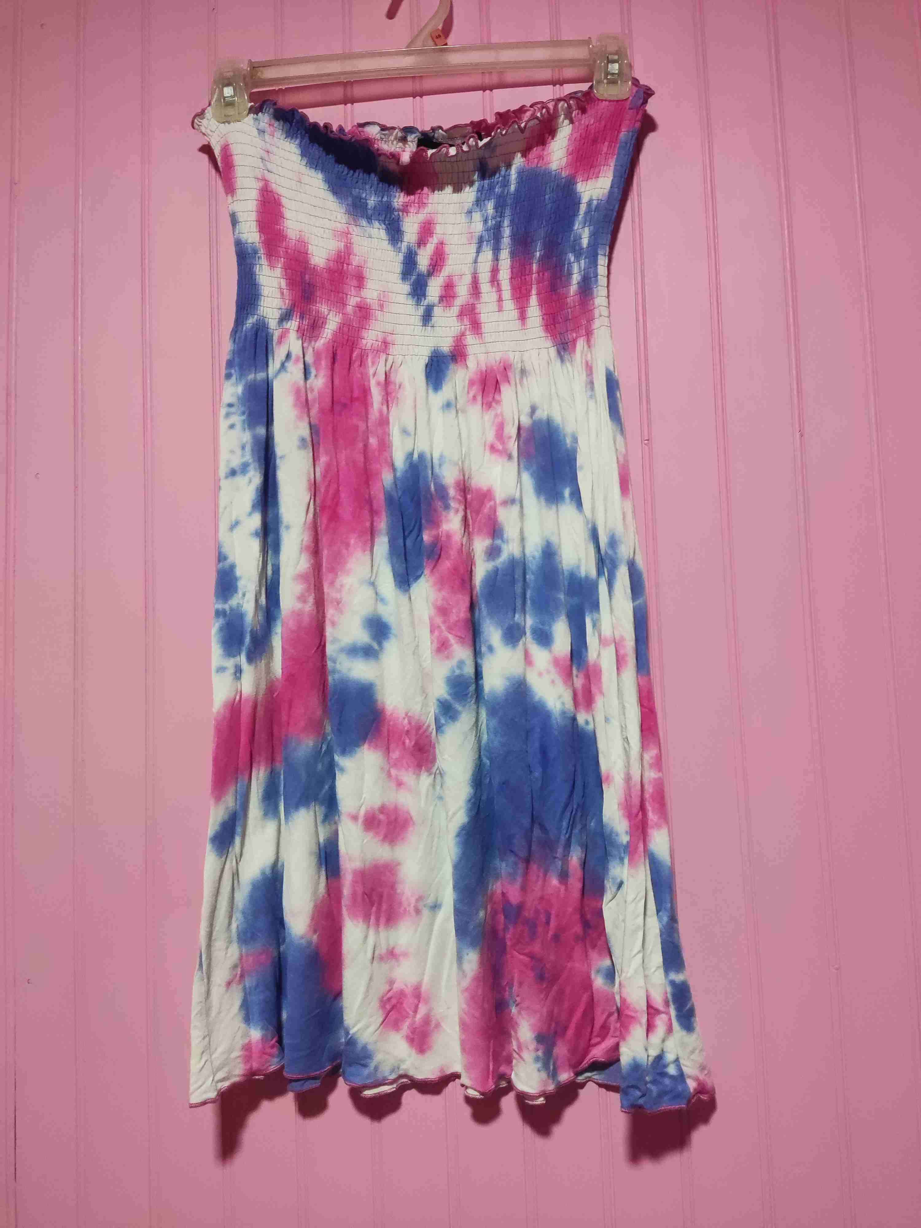 Falda estilo bohemio con diseño tie-dye en azul y rosado. Perfecto para el verano.