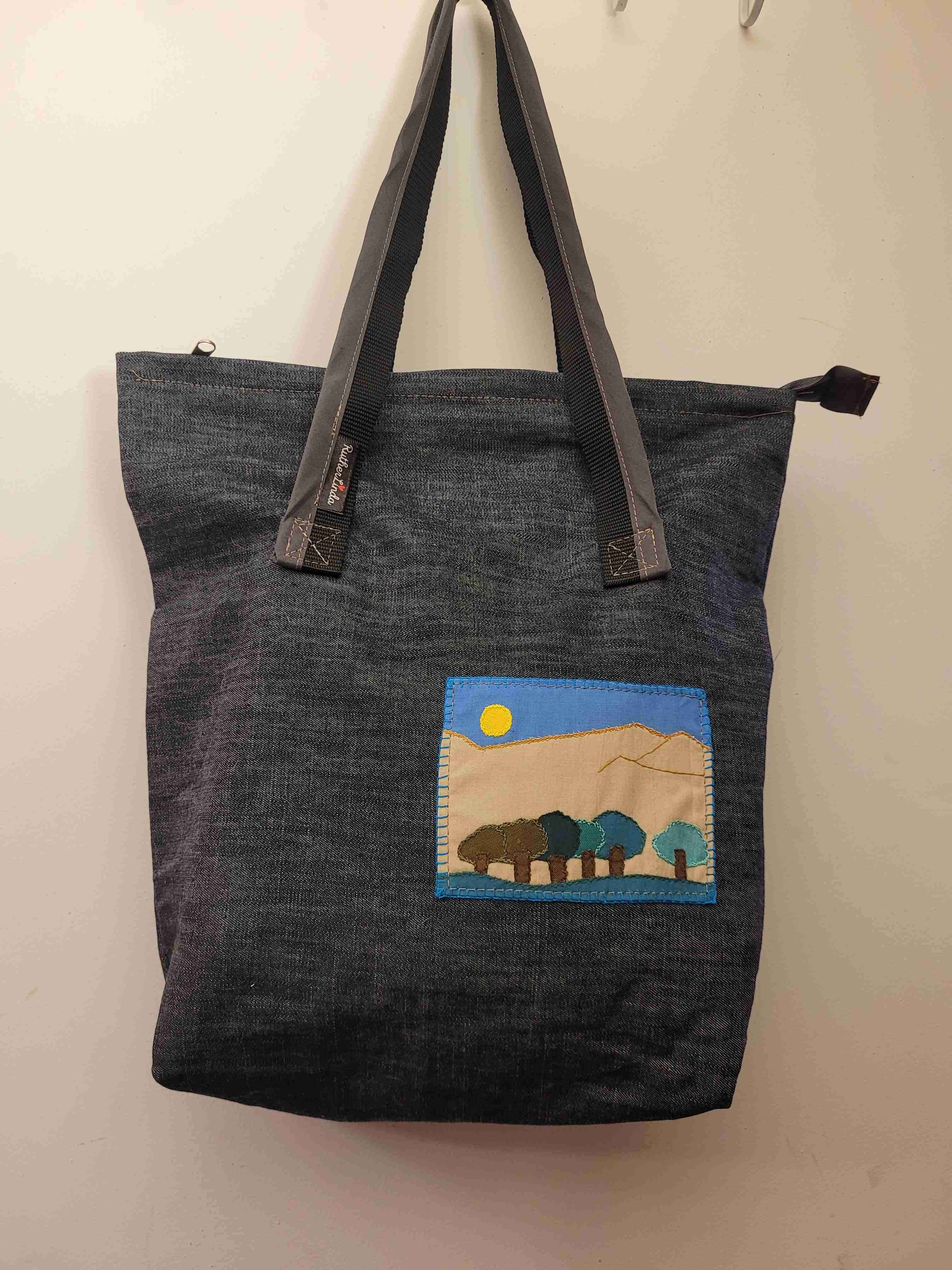 Bolso amplio de jeans forrado con tela impermeable resistente, ideal para el uso diario. Diseño hecho a mano. Por fundación solidaridad .. Pieza única. Producto único.