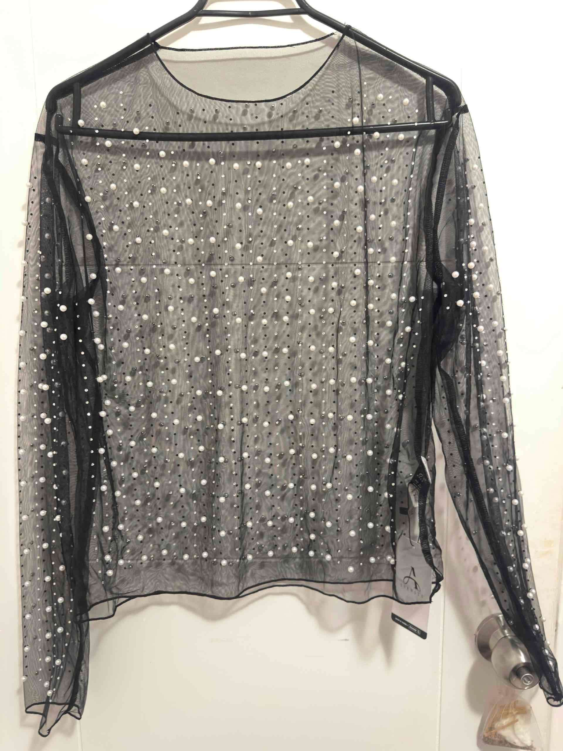 Blusa negra transparente decorada con perlas, talla L. Nueva.